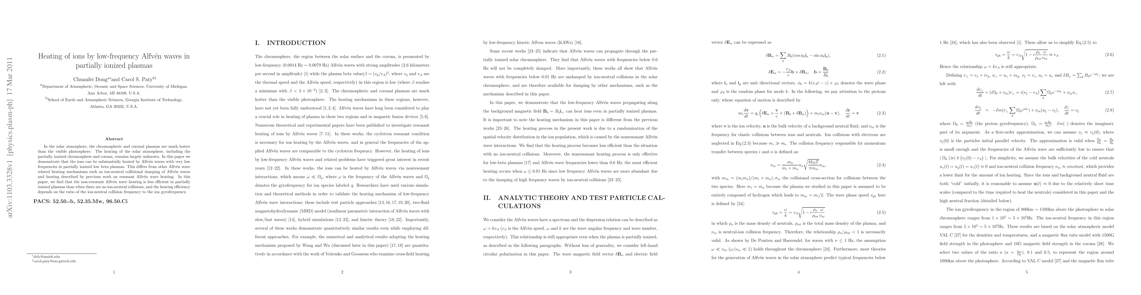 This paper investigates the heating of ions in partially ionized plasmas by low-frequency Alfvén waves, finding that such waves can substantially heat ions in the solar chromosphere and corona. The study reveals that the heating efficiency is less effective than in collisionless plasmas and depends on the ratio of ion-neutral collision frequency to the ion gyrofrequency.