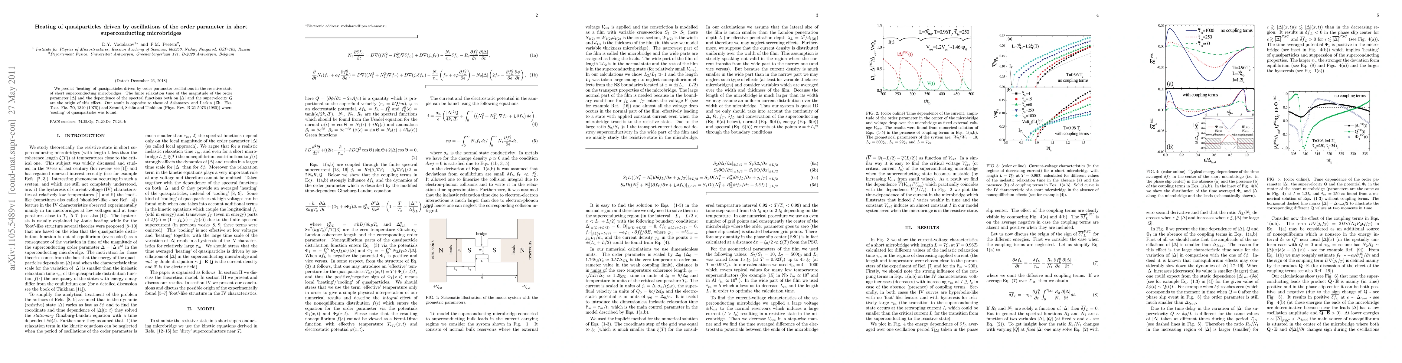 We predict 'heating' of quasiparticles driven by order parameter oscillations in the resistive state of short superconducting microbridges. The finite relaxation time of the magnitude of the order parameter $|\Delta|$ and the dependence of the spectral functions both on $|\Delta|$ and the supervelocity $Q$ are the origin of this effect. Our result is opposite to those of Aslamazov and Larkin (Zh. Eks. Teor. Fiz. {\bf 70}, 1340 (1976)) and Schmid, Schon and Tinkham (Phys. Rev. B {\bf 21} 5076 (1980)) where 'cooling' of quasiparticles was found.