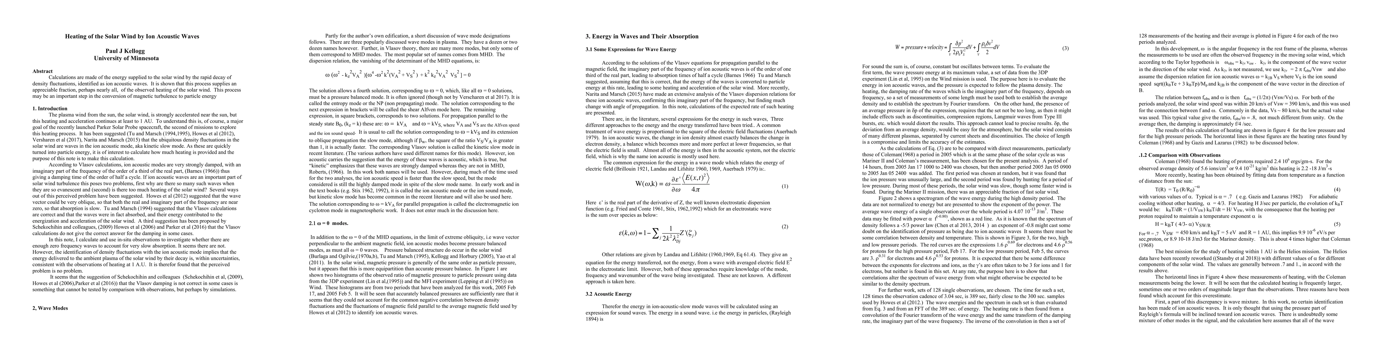 Calculations are made of the energy supplied to the solar wind by the rapid decay of density fluctuations, identified as ion acoustic waves. It is shown that this process supplies an appreciable fraction, perhaps nearly all, of the observed heating of the solar wind. This process may be an important step in the conversion of magnetic turbulence to particle energy