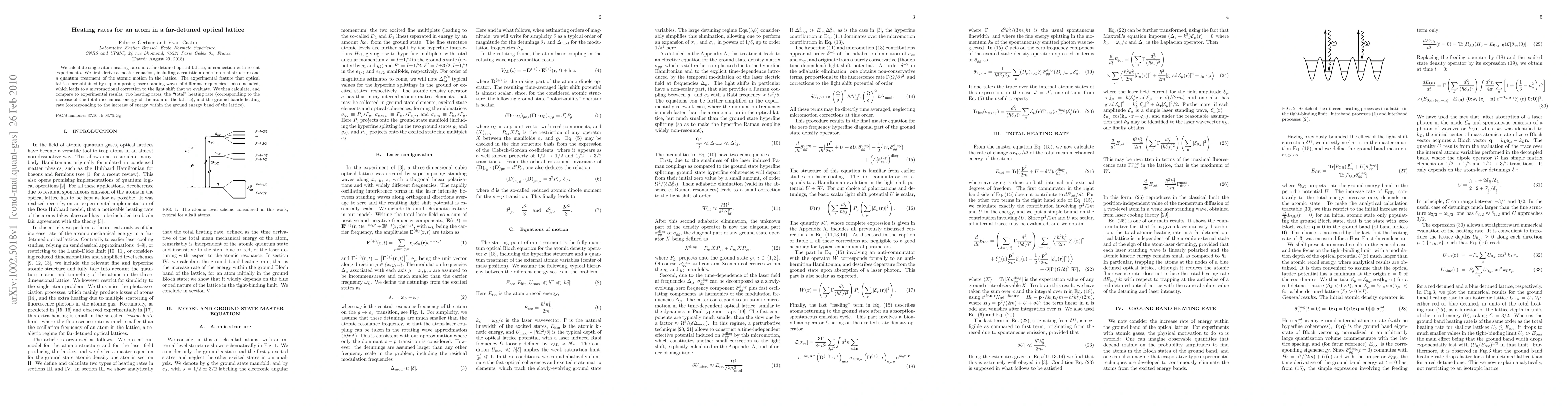 This paper derives a master equation to calculate single atom heating rates in a far-detuned optical lattice, considering atomic internal structure and micromotional corrections. It compares calculated "total" and "ground bande" heating rates with experimental results.
