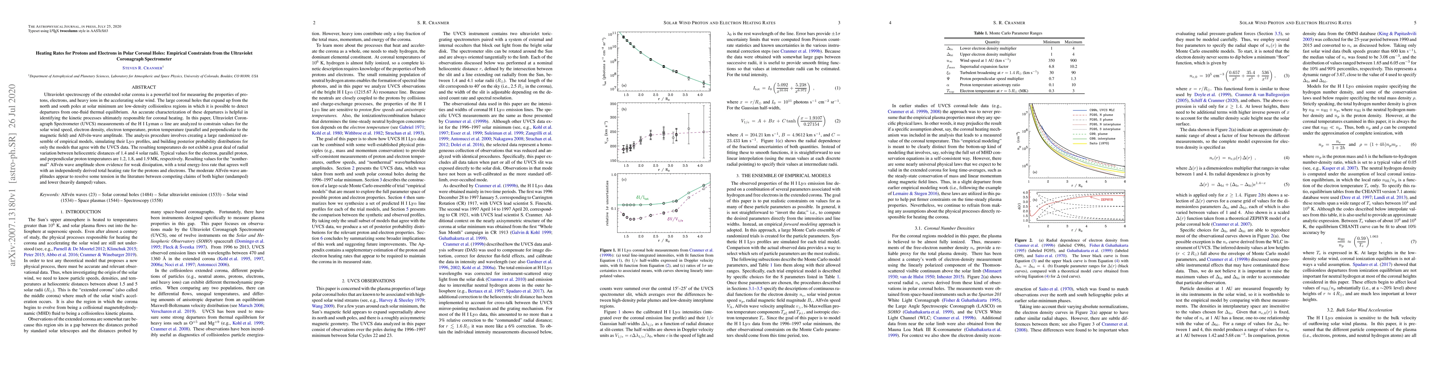 This paper uses Ultraviolet Coronagraph Spectrometer (UVCS) measurements to analyze proton and electron heating rates in polar coronal holes, finding consistent temperatures and resolving some debate over Alfven wave dissipation. Typical temperatures are 1.2 MK for electrons and 1.8-1.9 MK for protons, with Alfven wave amplitudes indicating moderate dissipation.