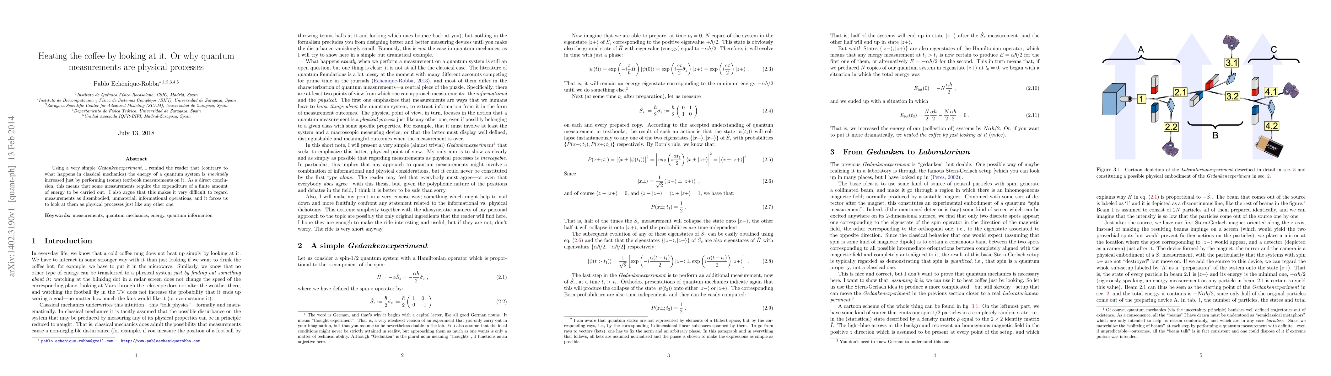 Using a very simple Gedankenexperiment, I remind the reader that (contrary to what happens in classical mechanics) the energy of a quantum system is inevitably increased just by performing (some) textbook measurements on it. As a direct conclusion, this means that some measurements require the expenditure of a finite amount of energy to be carried out. I also argue that this makes it very difficult to regard measurements as disembodied, immaterial, informational operations, and it forces us to look at them as physical processes just like any other one.