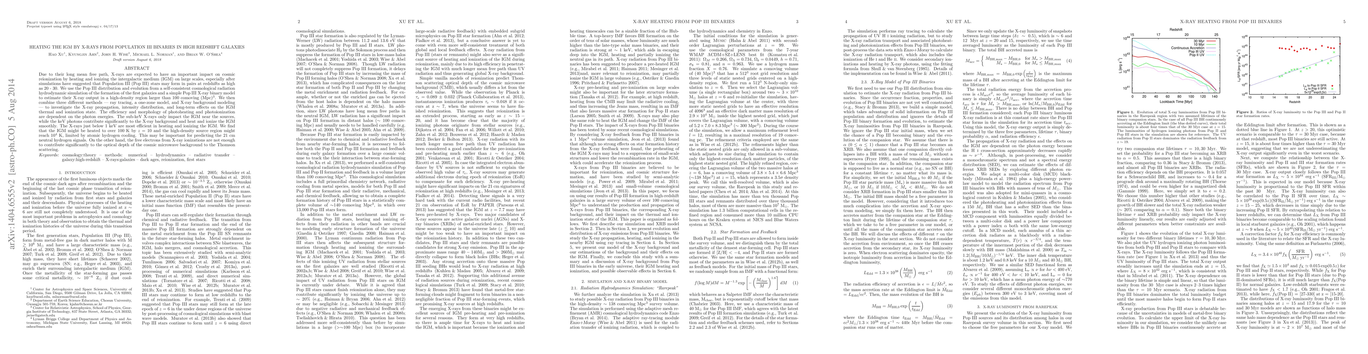 This paper investigates the impact of X-rays from Population III binary stars on the intergalactic medium (IGM) at high redshifts, finding that keV photons significantly heat and ionize the IGM, potentially raising its temperature to over 100 K by $z=10$. However, the resulting free electrons do not significantly affect the optical depth of the CMB to Thomson scattering.