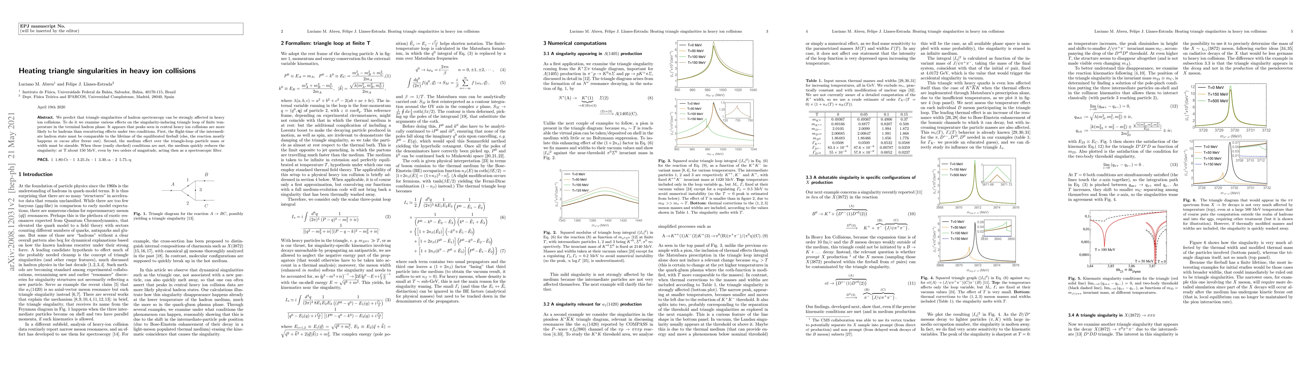 We predict that triangle singularities of hadron spectroscopy can be strongly affected in heavy ion collisions. To do it we examine various effects on the singularity-inducing triangle loop of finite temperature in the terminal hadron phase. It appears that peaks seen in central heavy ion collisions are more likely to be hadrons than rescattering effects under two conditions. First, the flight-time of the intermediate hadron state must be comparable to the lifetime of the equilibrated fireball (else, the reaction mostly happens in vacuo after freeze out). Second, the medium effect over the triangle-loop particle mass or width must be sizeable. When these (easily checked) conditions are met, the medium quickly reduces the singularity: at T about 150 MeV, even by two orders of magnitude, acting then as a spectroscopic filter.