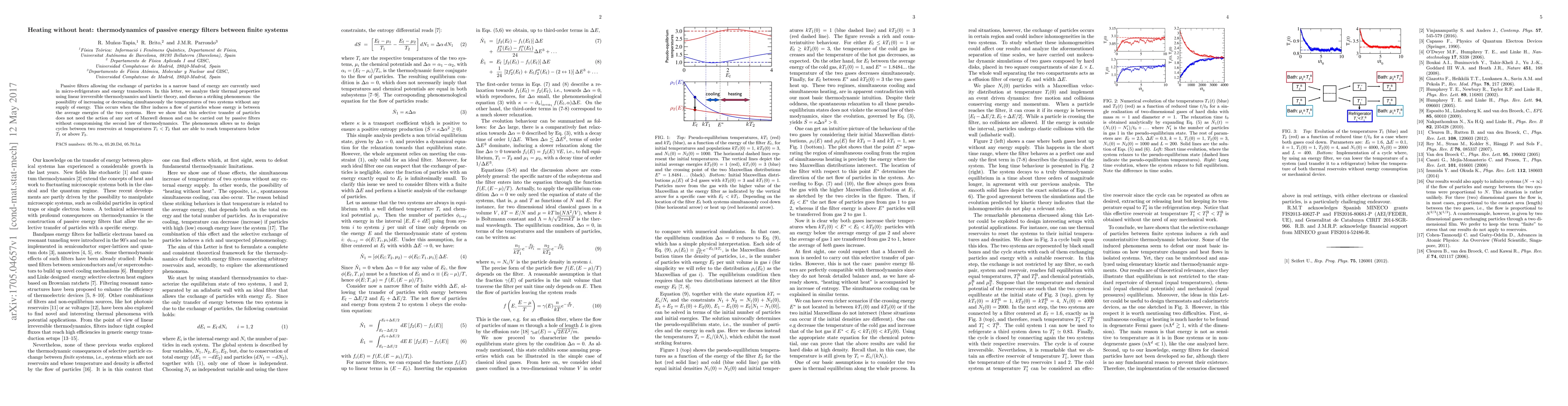 This paper explores the thermodynamics of passive energy filters that selectively transfer particles between two systems, enabling temperature changes without external energy input. It demonstrates that such filters can increase or decrease the temperatures of two systems simultaneously without violating the second law of thermodynamics.