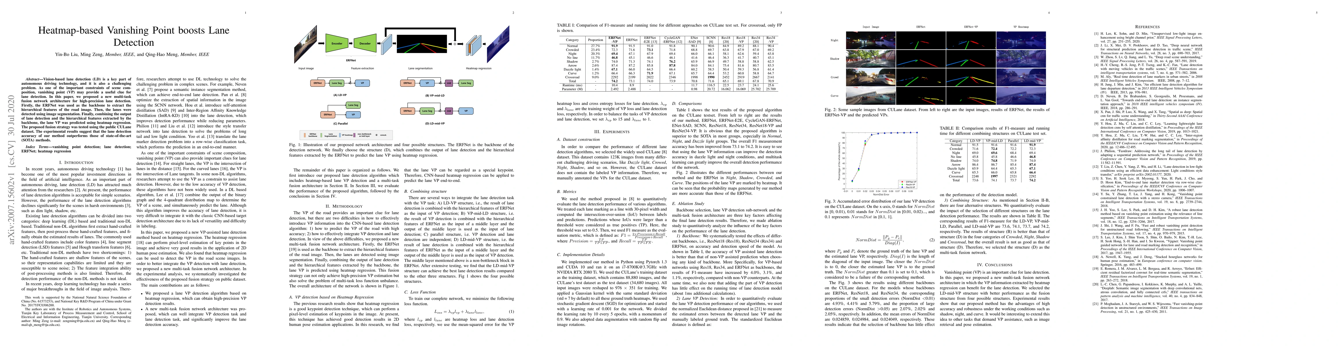 This paper proposes a multi-task fusion network for high-precision lane detection using ERFNet for feature extraction and heatmap regression for vanishing point prediction. Experimental results on the CULane dataset show that the method outperforms state-of-the-art techniques.