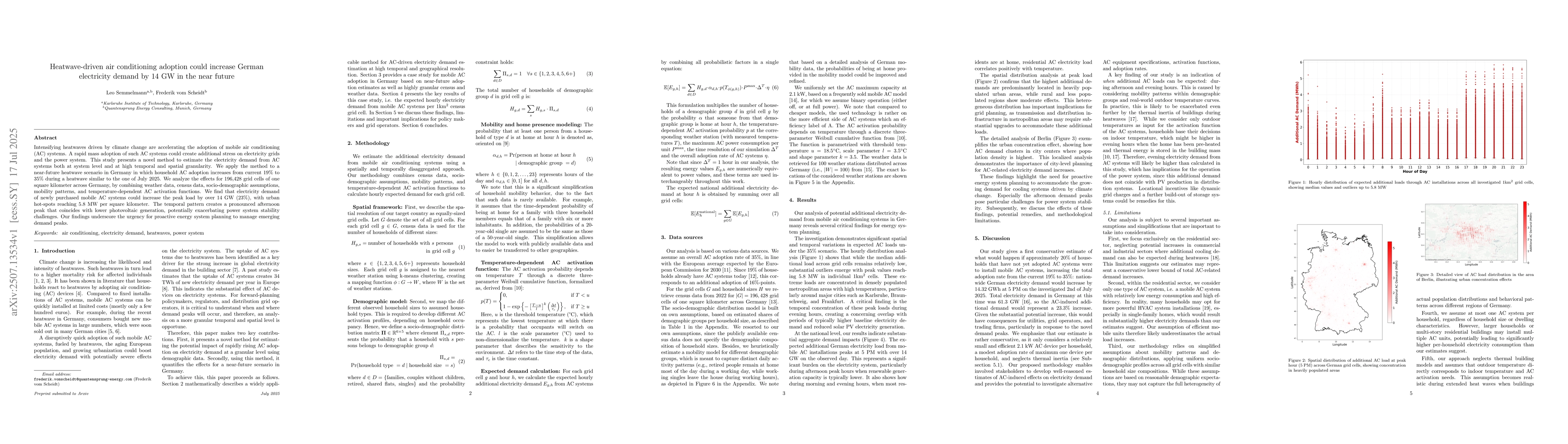Intensifying heatwaves driven by climate change are accelerating the adoption of mobile air conditioning (AC) systems. A rapid mass adoption of such AC systems could create additional stress on electricity grids and the power system. This study presents a novel method to estimate the electricity demand from AC systems both at system level and at high temporal and spatial granularity. We apply the method to a near-future heatwave scenario in Germany in which household AC adoption increases from current 19% to 35% during a heatwave similar to the one of July 2025. We analyze the effects for 196,428 grid cells of one square kilometer across Germany, by combining weather data, census data, socio-demographic assumptions, mobility patterns, and temperature-dependent AC activation functions. We find that electricity demand of newly purchased mobile AC systems could increase the peak load by over 14 GW (23%), with urban hot-spots reaching 5.8 MW per square kilometer. The temporal pattern creates a pronounced afternoon peak that coincides with lower photovoltaic generation, potentially exacerbating power system stability challenges. Our findings underscore the urgency for proactive energy system planning to manage emerging demand peaks.