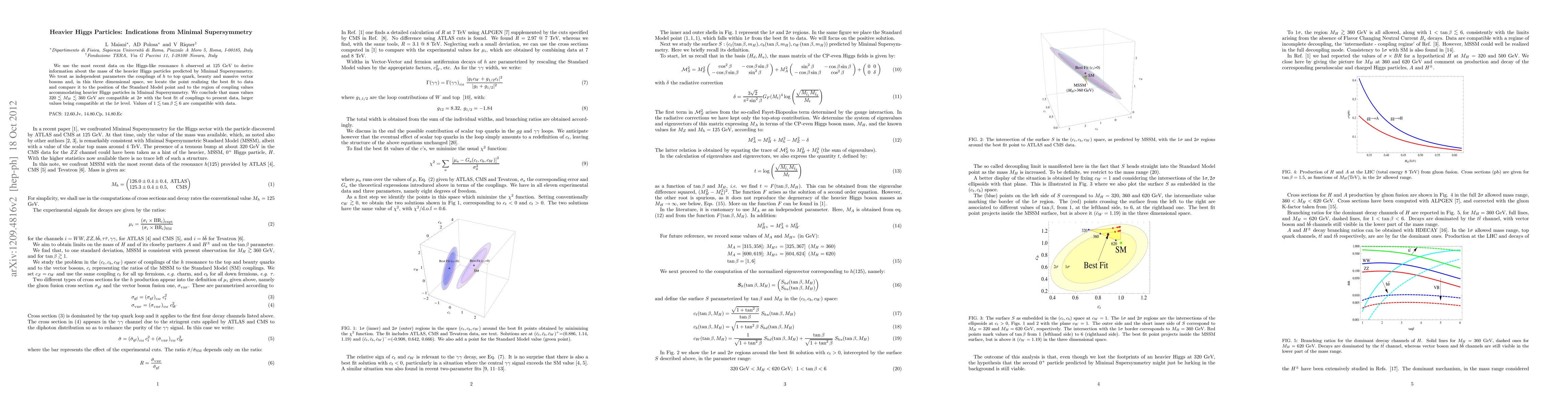 We use the most recent data on the Higgs-like resonance h observed at 125 GeV to derive information about the mass of the heavier Higgs particles predicted by Minimal Supersymmetry. We treat as independent parameters the couplings of h to top quark, beauty and massive vector bosons and, in this three dimensional space, we locate the point realizing the best fit to data and compare it to the position of the Standard Model point and to the region of coupling values accommodating heavier Higgs particles in Minimal Supersymmetry. We conclude that mass values 320< M_H< 360 GeV are compatible at 2sigma with the best fit of couplings to present data, larger values being compatible at the 1sigma level. Values of 1< tan(beta)< 6 are compatible with data.