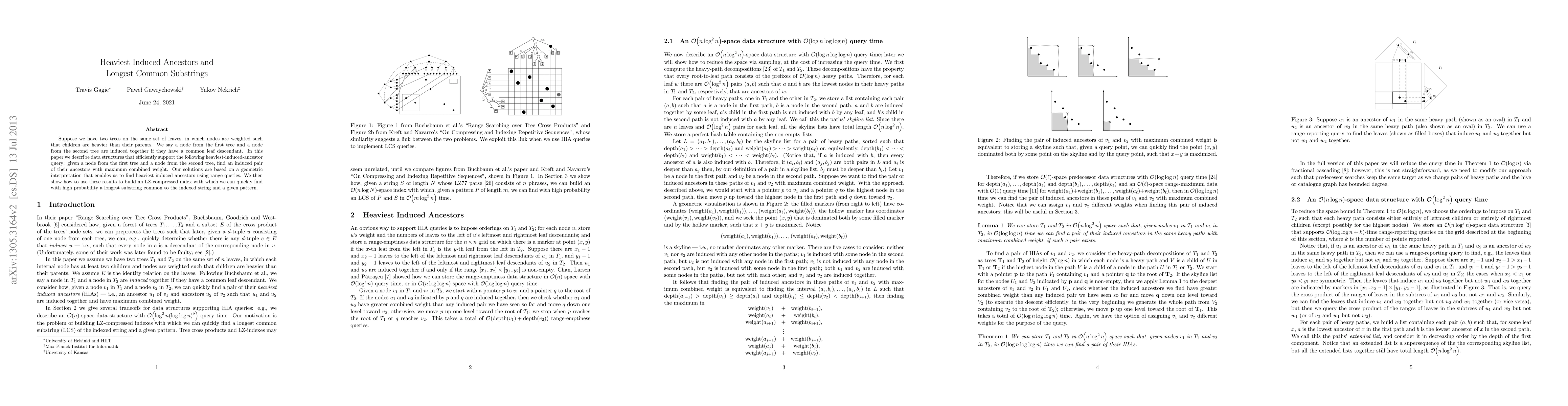 The paper describes data structures for efficiently supporting heaviest-induced-ancestor queries in weighted trees and applies these results to build an LZ-compressed index for finding longest common substrings.