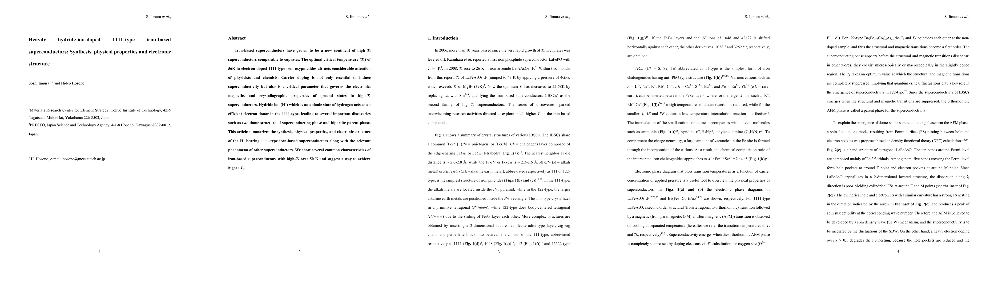 Iron-based superconductors have grown to be a new continent of high Tc superconductors comparable to cuprates. The optimal critical temperature (Tc) of 56 K in electron-doped 1111-type iron oxypnictides attracts considerable attention of physicists and chemists. Carrier doping is not only essential to induce superconductivity but also is a critical parameter that governs the electronic, magnetic, and crystallographic properties of ground states in high-Tc superconductors. Hydride ion (H-) which is an anionic state of hydrogen acts as an efficient electron donor in the 1111-type, leading to several important discoveries such as two-dome structure of superconducting phase and bipartite parent phase. This article summarizes the synthesis, physical properties, and electronic structure of the H- bearing 1111-type iron-based superconductors along with the relevant phenomena of other superconductors. We show several common characteristics of iron-based superconductors with high-Tc over 50 K and suggest a way to achieve higher Tc.