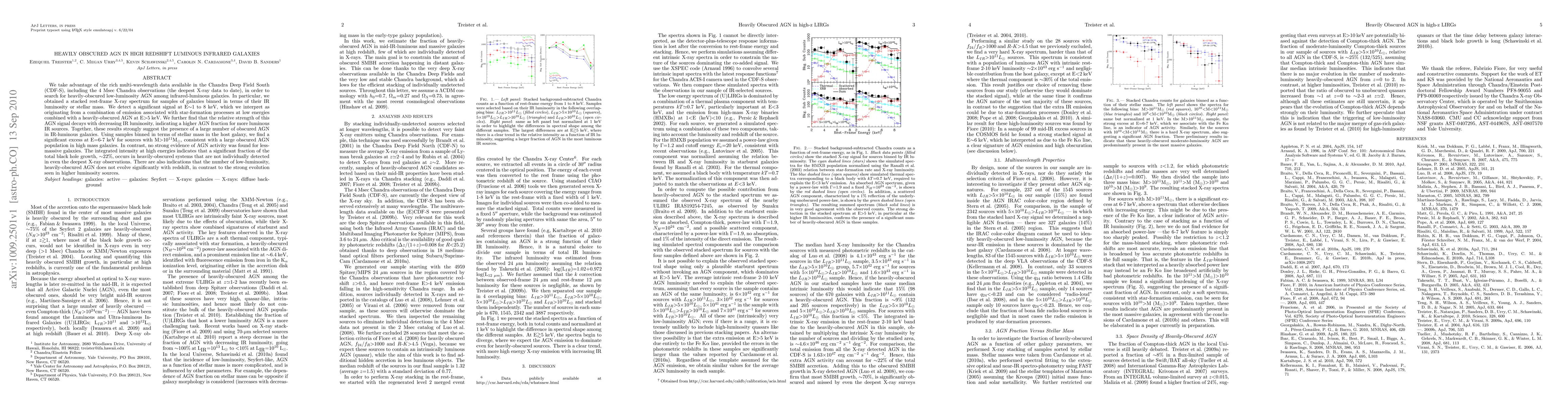 This study identifies heavily-obscured low-luminosity AGN in high-redshift infrared-luminous galaxies using deep X-ray data from the Chandra Deep Field South. It finds a significant AGN signal at high energies in more luminous IR galaxies, suggesting a large population of obscured AGN, especially in high-mass galaxies.