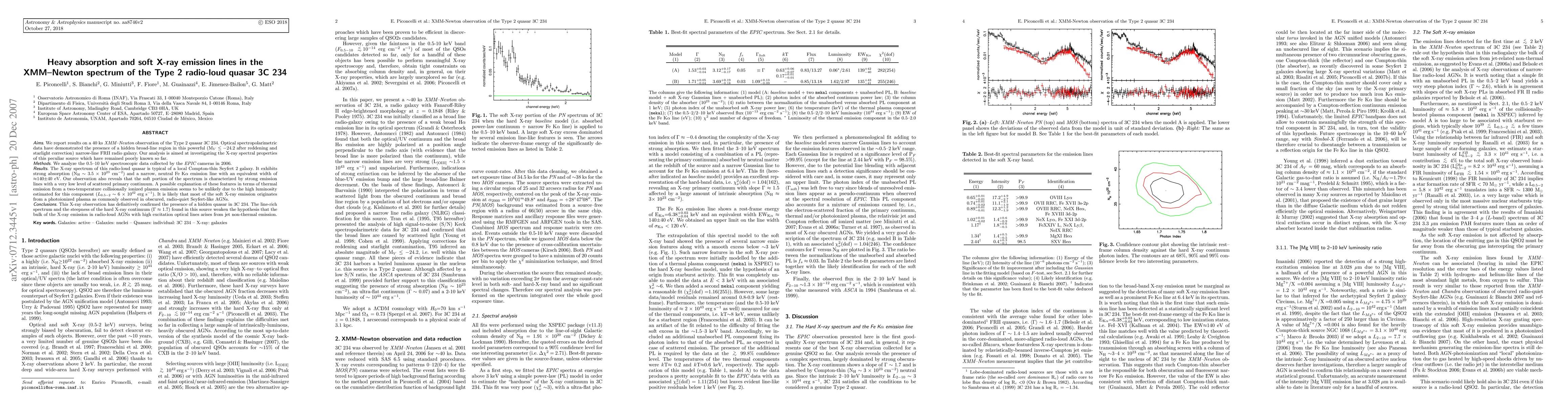 This paper reports on an XMM-Newton observation of the Type 2 quasar 3C 234, revealing strong X-ray absorption and emission lines indicative of a hidden broad-line region. The X-ray spectrum suggests a Compton-thin Seyfert 2 galaxy with a photoionized plasma contributing to the soft X-ray emission, challenging the notion that jet non-thermal emission dominates in such radio-loud AGNs.