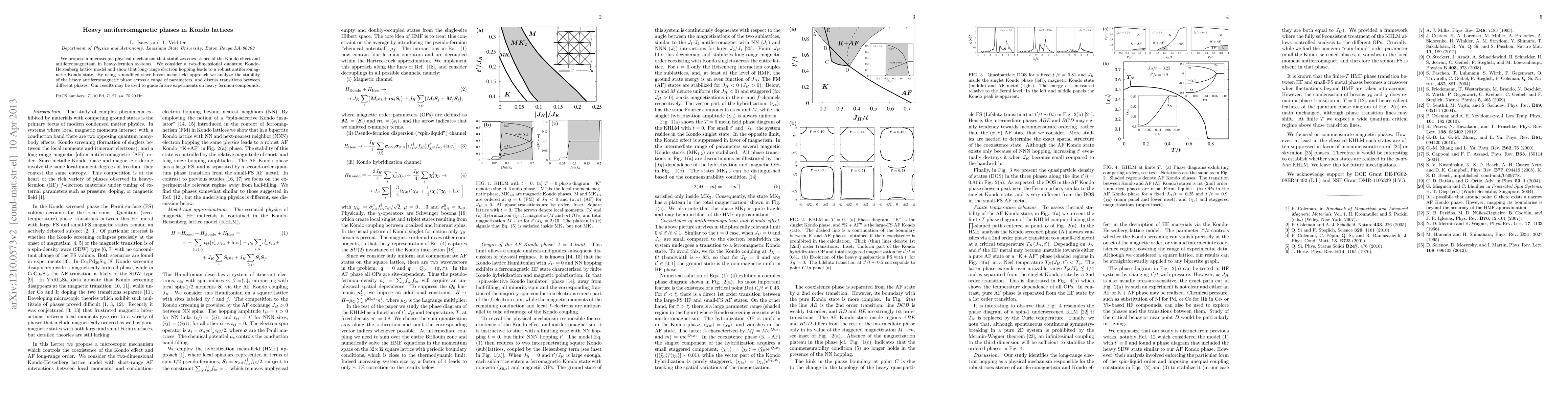 We propose a microscopic physical mechanism that stabilizes coexistence of the Kondo effect and antiferromagnetism in heavy-fermion systems. We consider a two-dimensional quantum Kondo-Heisenberg lattice model and show that long-range electron hopping leads to a robust antiferromagnetic Kondo state. By using a modified slave-boson mean-field approach we analyze the stability of the heavy antiferromagnetic phase across a range or parameters, and discuss transitions between different phases. We also address connection to experiments on heavy fermion compounds.