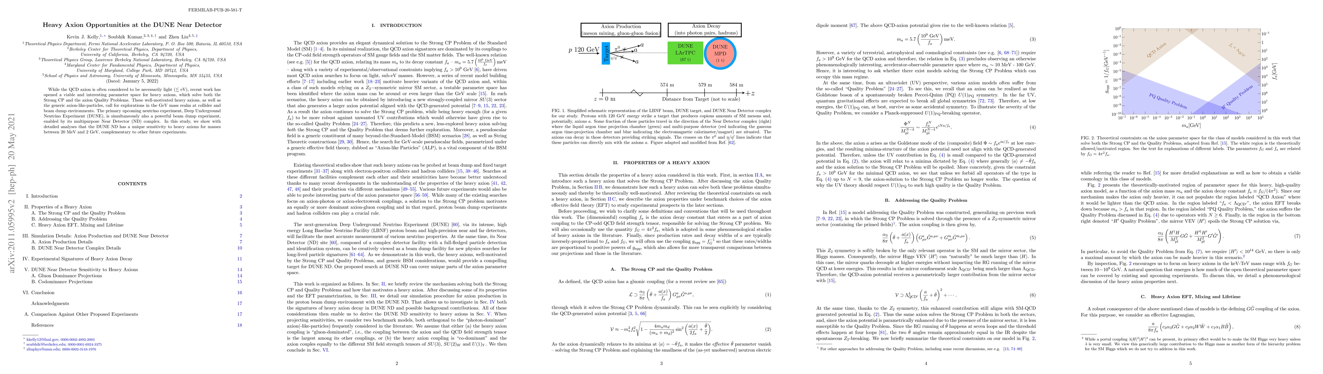 The DUNE Near Detector has unique sensitivity to heavy axions with masses between 20 MeV and 2 GeV, complementing other future experiments. This discovery opens a new parameter space for solving the Strong CP and axion Quality Problems.
