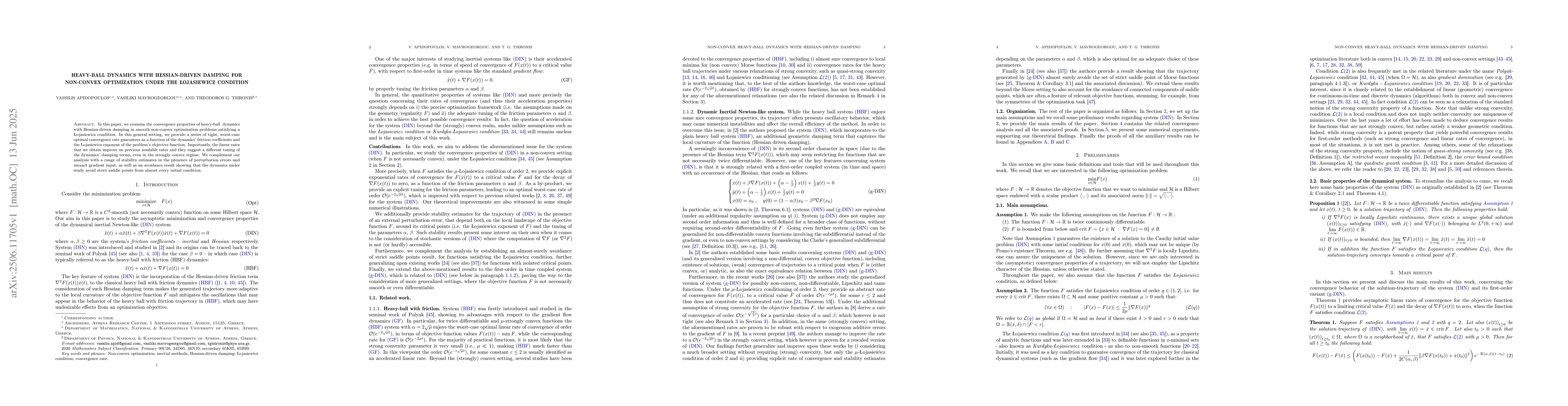 In this paper, we examine the convergence properties of heavy-ball dynamics with Hessian-driven damping in smooth non-convex optimization problems satisfying a {\L}ojasiewicz condition. In this general setting, we provide a series of tight, worst-case optimal convergence rate guarantees as a function of the dynamics' friction coefficients and the {\L}ojasiewicz exponent of the problem's objective function. Importantly, the linear rates that we obtain improve on previous available rates and they suggest a different tuning of the dynamics' damping terms, even in the strongly convex regime. We complement our analysis with a range of stability estimates in the presence of perturbation errors and inexact gradient input, as well as an avoidance result showing that the dynamics under study avoid strict saddle points from almost every initial condition,