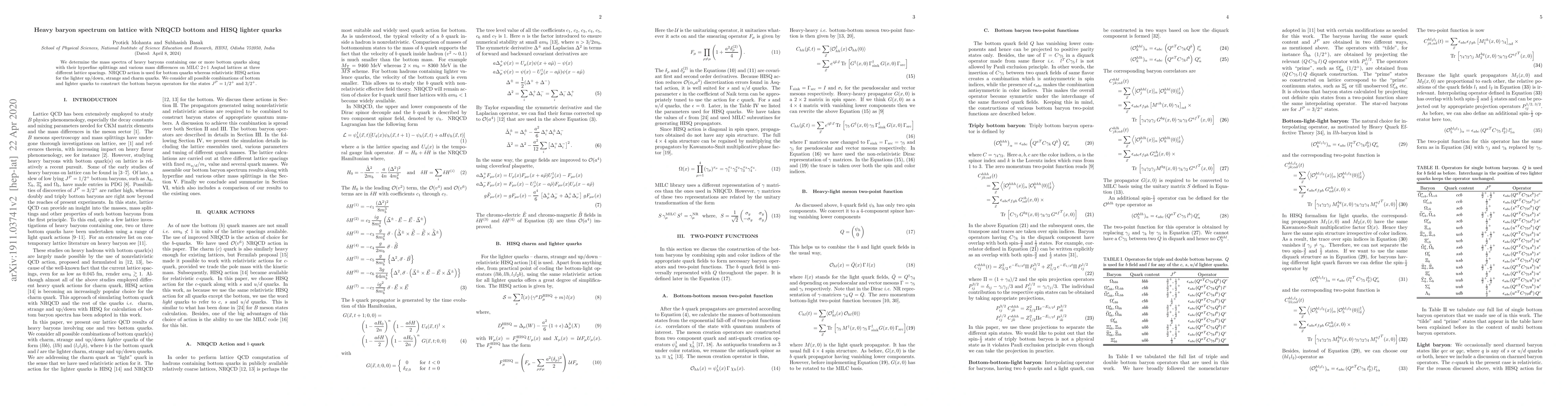 This study determines the mass spectra and hyperfine splittings of heavy baryons with bottom quarks using NRQCD for bottom and HISQ for lighter quarks on MILC lattices. It examines all combinations of bottom and lighter quarks to construct $J^P=1/2^+$ and $3/2^+$ states.