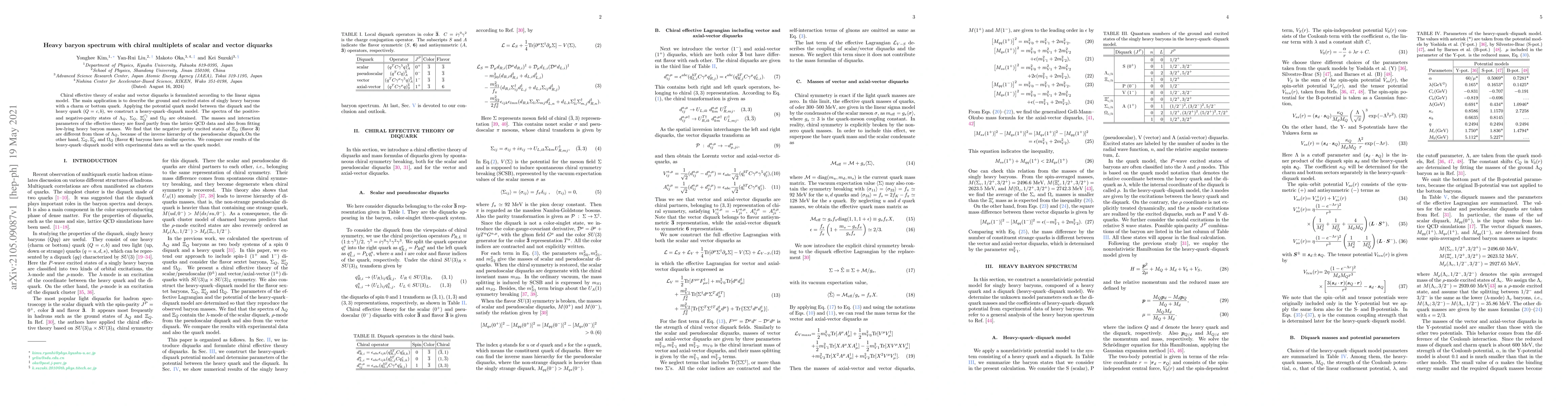Chiral effective theory of scalar and vector diquarks is formulated according to the linear sigma model. The main application is to describe the ground and excited states of singly heavy baryons with a charm or bottom quark. Applying the potential quark model between the diquark and the heavy quark ($Q=c, b$), we construct a heavy-quark--diquark model. The spectra of the positive- and negative-parity states of $\Lambda_Q$, $\Sigma_Q$, $\Xi^{(')}_Q$ and $\Omega_Q$ are obtained. The masses and interaction parameters of the effective theory are fixed partly from the lattice QCD data and also from fitting low-lying heavy baryon masses. We find that the negative parity excited states of $\Xi_Q$ (flavor $\bar{\bf 3}$) are different from those of $\Lambda_Q$, because of the inverse hierarchy of the pseudoscalar diquark. On the other hand, $\Sigma_Q, \Xi'_Q$ and $\Omega_Q$ (flavor ${\bf 6}$) baryons have similar spectra. We compare our results of the heavy-quark--diquark model with experimental data as well as the quark model.