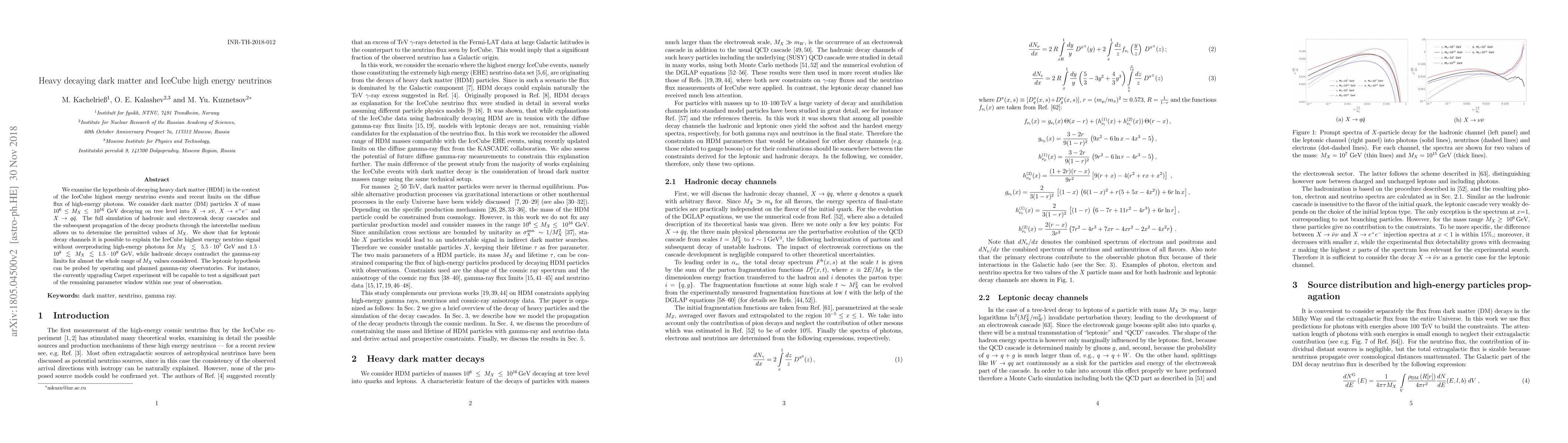 This paper explores the possibility of decaying heavy dark matter (HDM) as an explanation for IceCube's high-energy neutrino events, finding that leptonic decay channels can fit the observed neutrinos without violating gamma-ray limits for certain mass ranges, while hadronic decays do not. Future gamma-ray observatories may test this hypothesis.