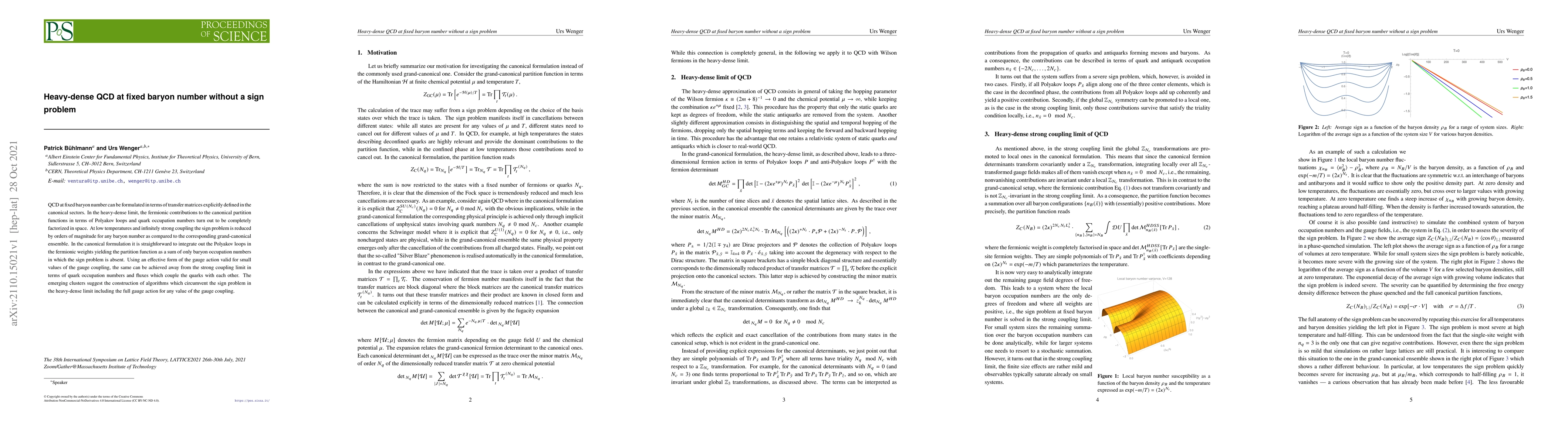 This research presents a method to avoid the sign problem in heavy-dense QCD at fixed baryon number by factorizing fermionic contributions in space and integrating out Polyakov loops. The approach is effective at low temperatures and strong coupling, and can be extended to smaller coupling values using quark occupation numbers and fluxes, suggesting algorithms to circumvent the sign problem in the heavy-dense limit for any gauge coupling.