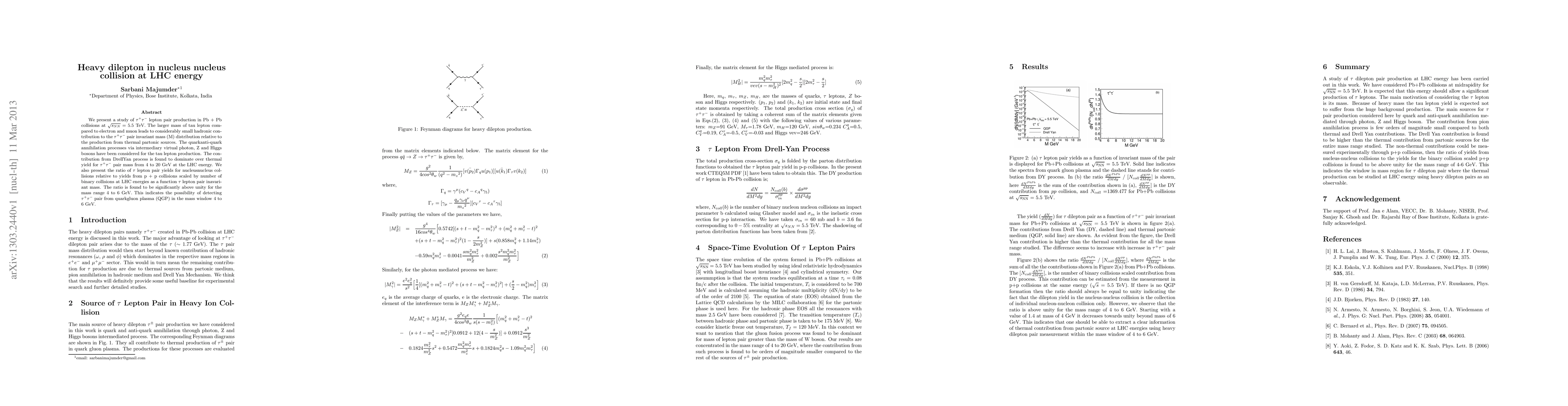 Researchers studied lepton pair production in Pb+Pb collisions at LHC energy, finding that a specific mass range of tau leptons could indicate detection of quark gluon plasma.