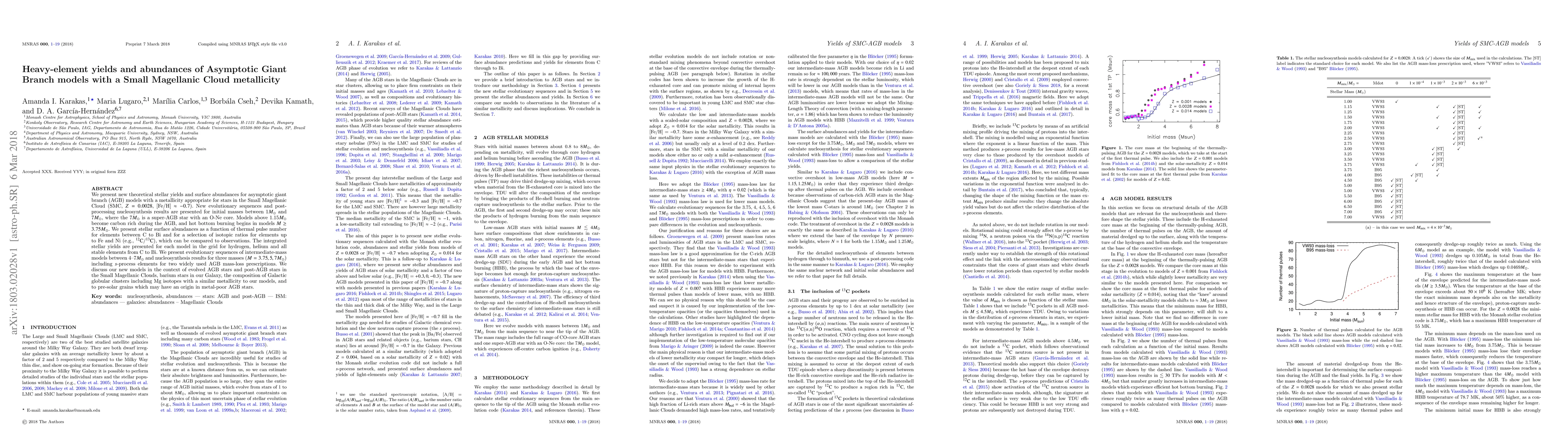 This paper presents new theoretical yields and surface abundances for asymptotic giant branch (AGB) stars with Small Magellanic Cloud metallicity, focusing on elements from carbon to bismuth. The study includes models for initial masses between 1 and 7 solar masses, highlighting carbon enrichment and hot bottom burning in higher mass models, and comparing results to observations and Galactic phenomena.