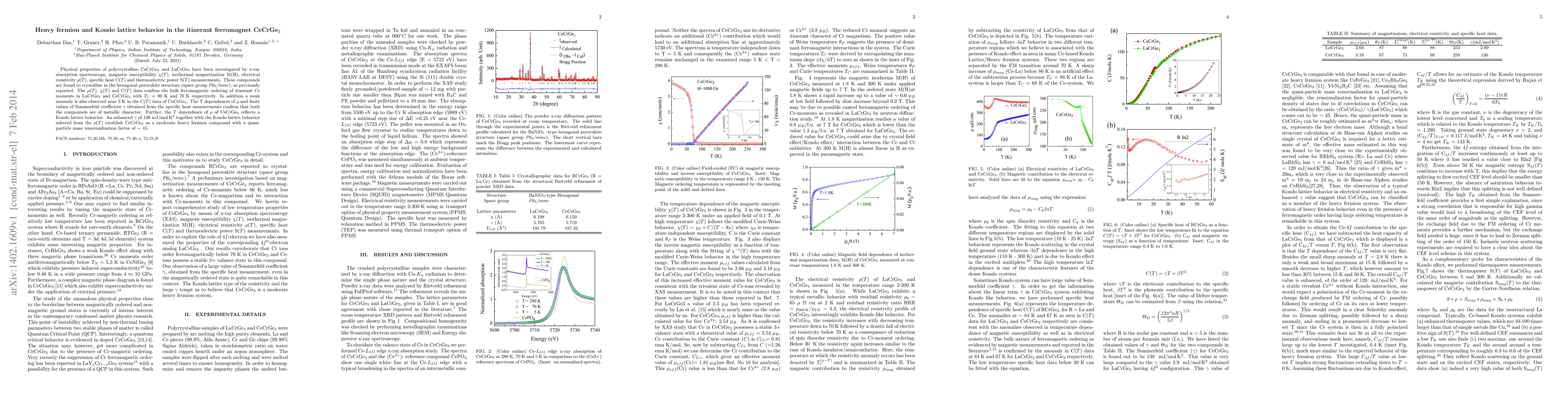 This study investigates the physical properties of CeCrGe$_3$ and LaCrGe$_3$, revealing itinerant ferromagnetism in both compounds. CeCrGe$_3$ exhibits Kondo lattice behavior and heavy fermion characteristics, with a quasi-particle mass renormalization factor of approximately 45.