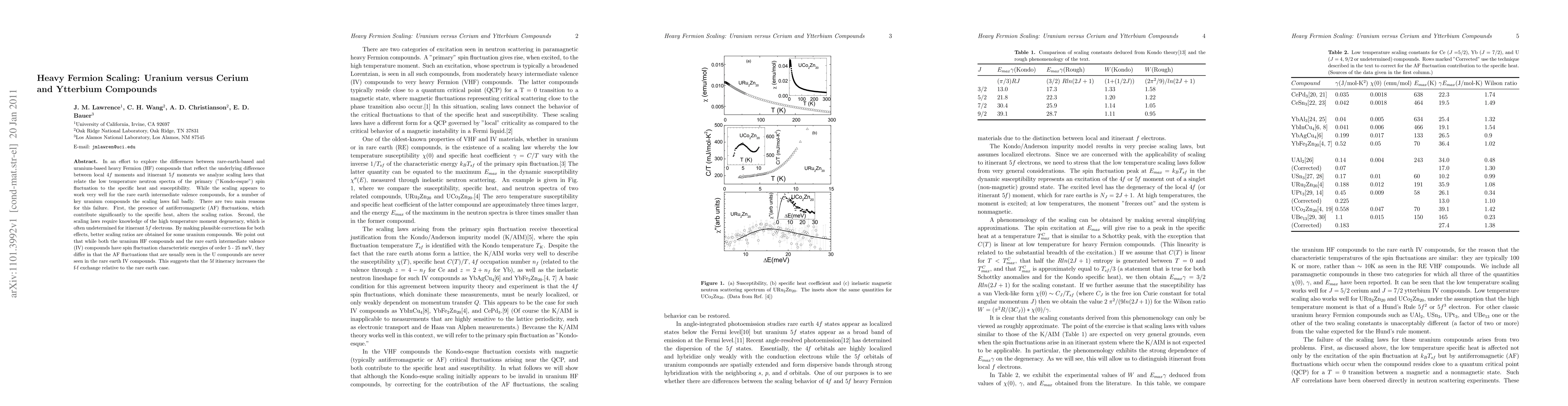 This paper investigates the differences in scaling laws between rare-earth and uranium-based heavy fermion compounds, finding that uranium compounds often deviate from scaling due to antiferromagnetic fluctuations and undetermined high-temperature moment degeneracy. Correcting for these factors improves scaling in uranium compounds, highlighting the increased f-f exchange in 5f itineracy compared to rare earth intermediate valence compounds.