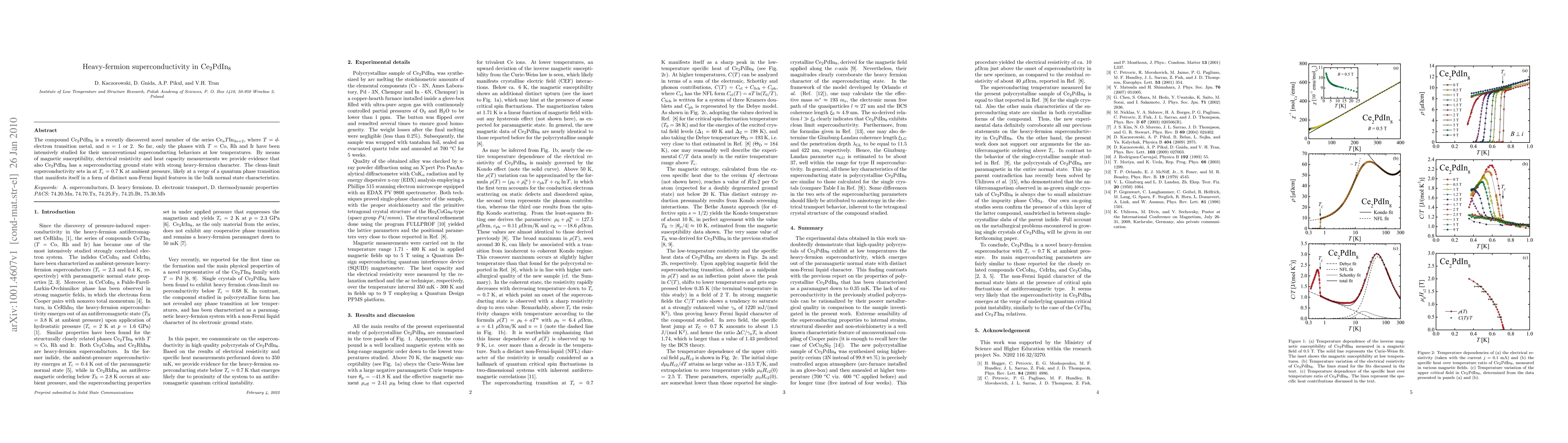 Ce2PdIn8 exhibits heavy-fermion superconductivity with a transition temperature of 0.7 K, as evidenced by magnetic, electrical, and thermal measurements, suggesting a potential quantum phase transition in its normal state.
