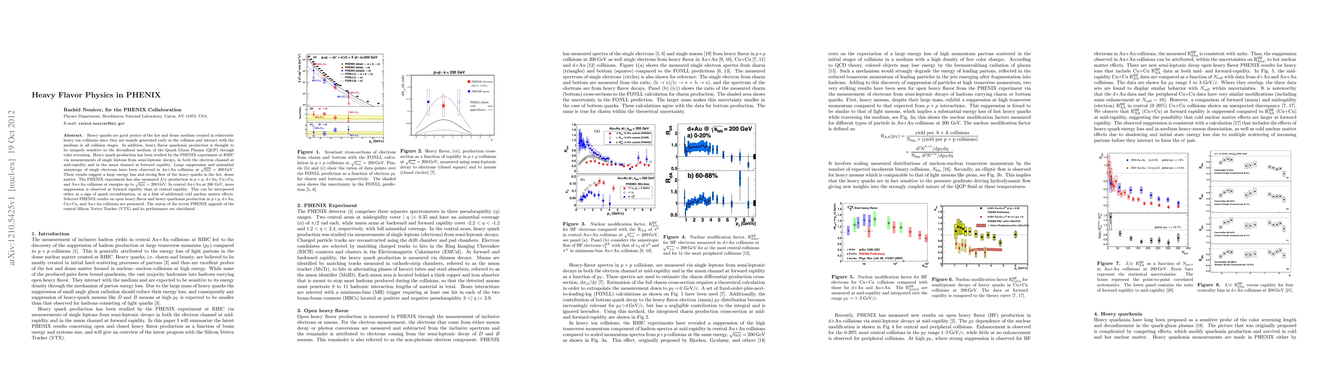 The PHENIX experiment at RHIC investigates heavy flavor physics in relativistic heavy ion collisions, observing significant suppression and anisotropy in heavy quark production, indicative of large energy loss and strong flow in the hot, dense medium. Additionally, J/psi production shows more suppression in central Au+Au collisions, suggesting quark recombination or cold nuclear matter effects.