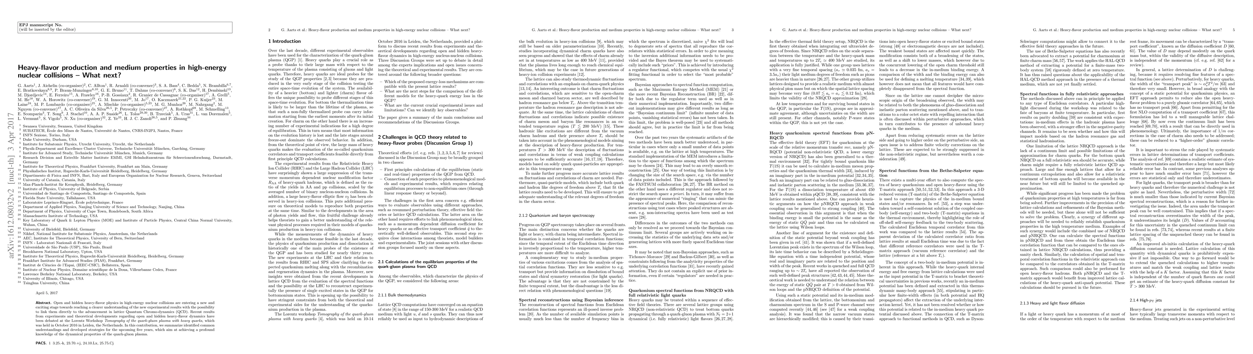 Open and hidden heavy-flavor physics in high-energy nuclear collisions are entering a new and exciting stage towards reaching a clearer understanding of the new experimental results with the possibility to link them directly to the advancement in lattice Quantum Chromo-dynamics (QCD). Recent results from experiments and theoretical developments regarding open and hidden heavy-flavor dynamics have been debated at the Lorentz Workshop "Tomography of the quark-gluon plasma with heavy quarks}, which was held in October 2016 in Leiden, the Netherlands. In this contribution, we summarize identified common understandings and developed strategies for the upcoming five years, which aim at achieving a profound knowledge of the dynamical properties of the quark-gluon plasma.