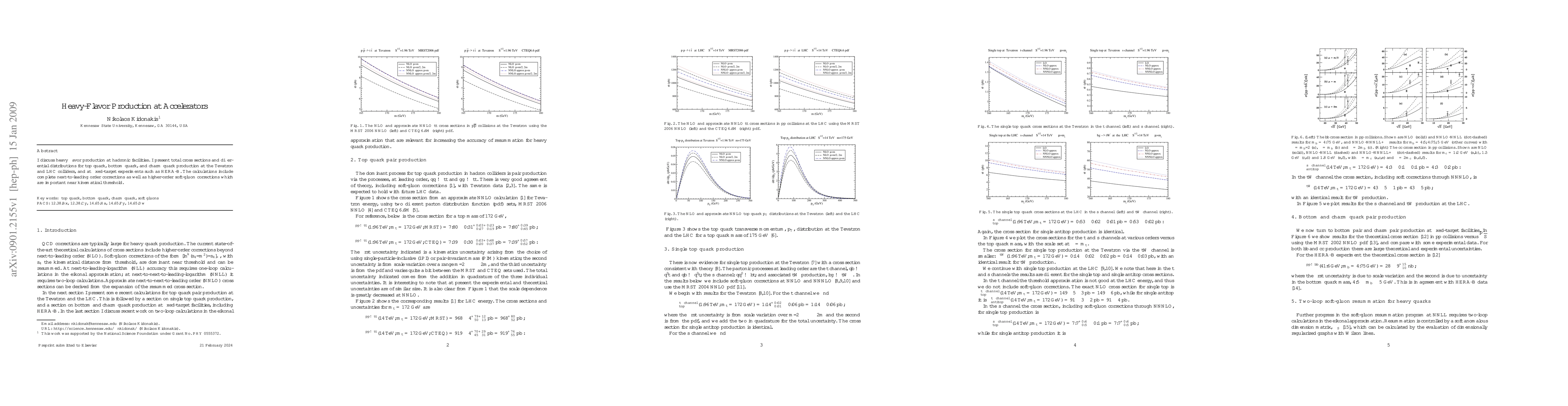 This paper examines the production of heavy flavor particles—top, bottom, and charm quarks—at various accelerators, including the Tevatron, LHC, and HERA-B. It provides detailed cross sections and distributions, incorporating next-to-leading order and higher-order soft-gluon corrections for precise results near kinematical thresholds.