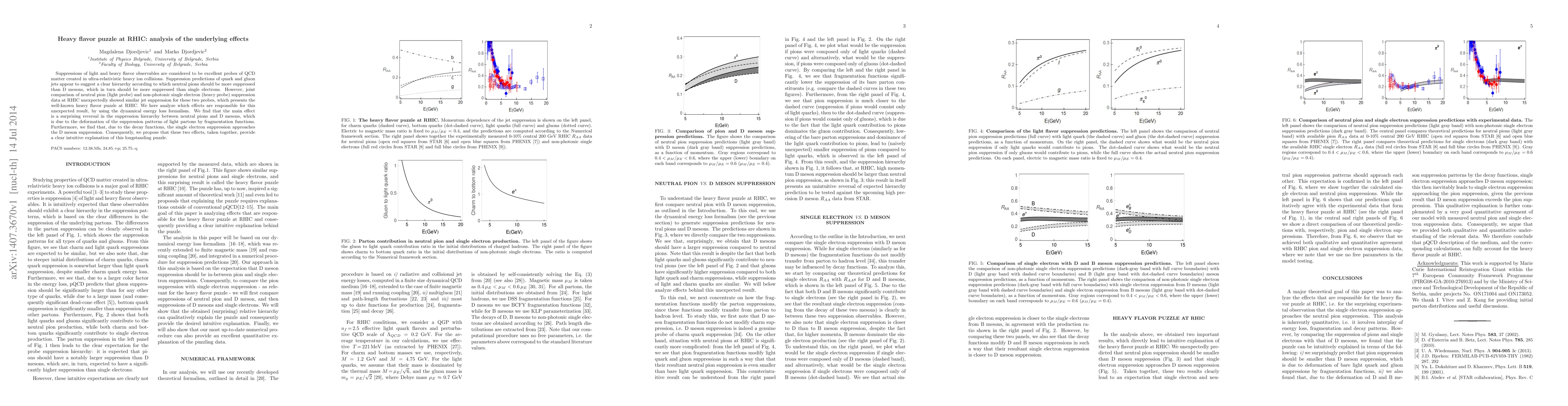 This paper investigates the unexpected similarity in suppression between light and heavy flavor probes in RHIC collisions, termed the heavy flavor puzzle. It finds that the reversal in suppression hierarchy and the influence of fragmentation functions are key factors explaining this phenomenon.