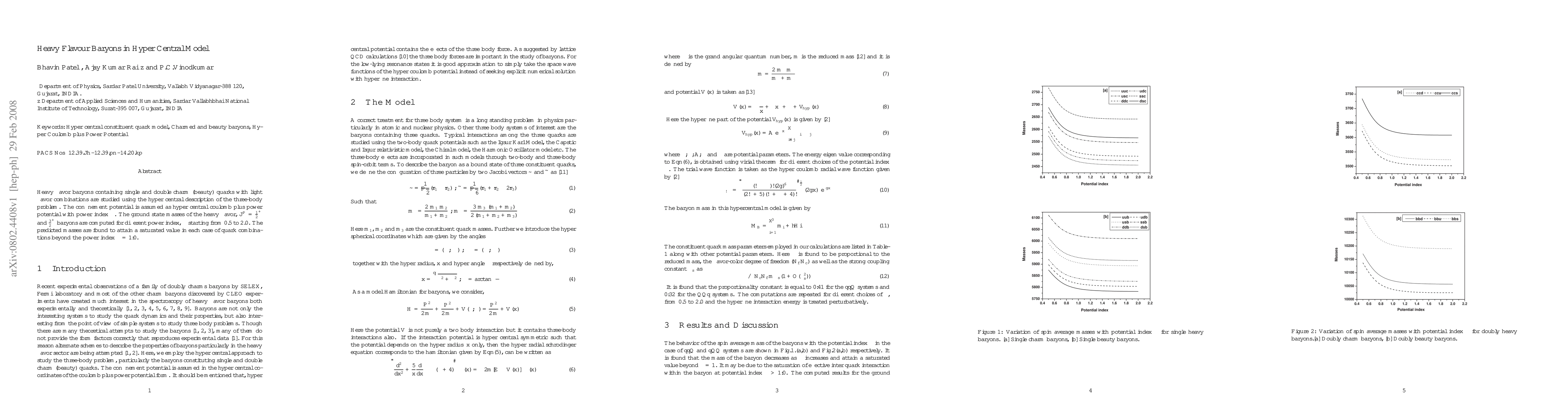 This study uses the hyper central model to predict masses of heavy flavor baryons with charm or beauty quarks, finding that masses reach a saturated value for power index values beyond 1.0.