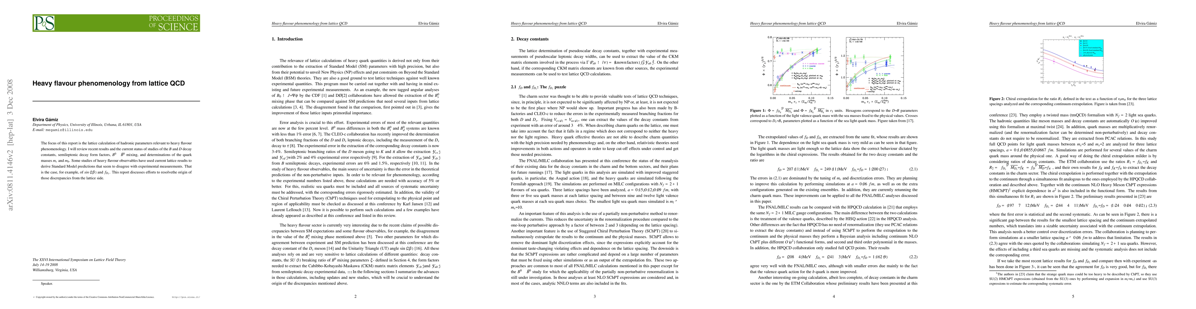 This paper reviews recent lattice QCD calculations of key hadronic parameters in heavy flavour phenomenology, including B and D decay constants, semileptonic decay form factors, and B^0-\bar B^0 mixing, while also addressing discrepancies between lattice predictions and experimental measurements, particularly for sin(2β) and f_{D_s}.