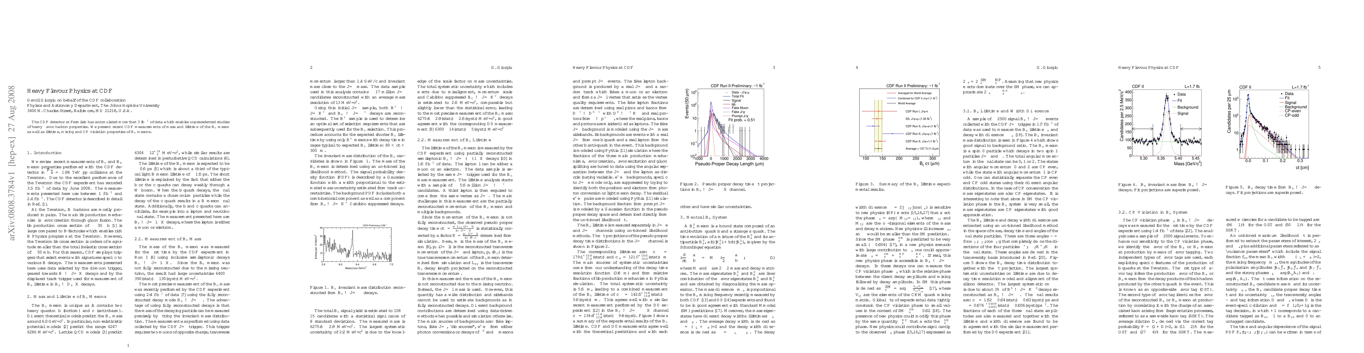 The CDF detector at Fermilab has accumulated more that 3/fb of data which enables unprecedented studies of heavy flavor hadron properties. We present recent CDF measurements of mass and lifetime of the Bc meson as well as lifetime, mixing and CP violation properties of Bs mesons.