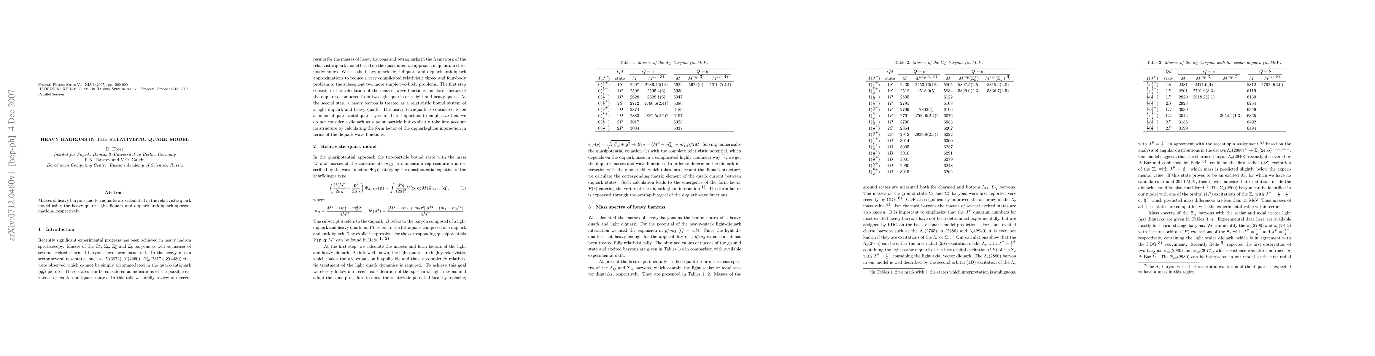 Masses of heavy baryons and tetraquarks are calculated in the relativistic quark model using the heavy-quark--light-diquark and diquark-antidiquark approximations, respectively.