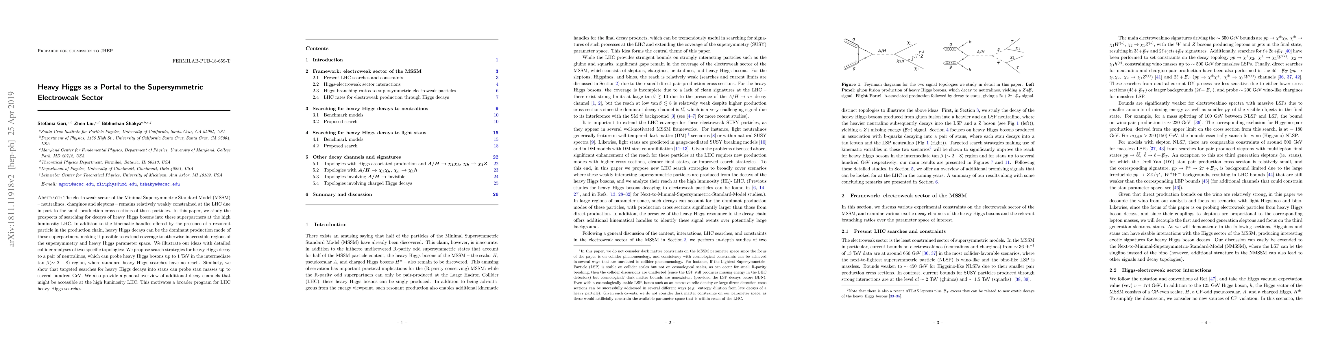 The electroweak sector of the Minimal Supersymmetric Standard Model (MSSM) - neutralinos, charginos and sleptons - remains relatively weakly constrained at the LHC due in part to the small production cross sections of these particles. In this paper, we study the prospects of searching for decays of heavy Higgs bosons into these superpartners at the high luminosity LHC. In addition to the kinematic handles offered by the presence of a resonant particle in the production chain, heavy Higgs decays can be the dominant production modes of these superpartners, making it possible to extend coverage to otherwise inaccessible regions of the supersymmetry and heavy Higgs parameter space. We illustrate our ideas with detailed collider analyses of two specific topologies: We propose search strategies for heavy Higgs decay to a pair of neutralinos, which can probe heavy Higgs bosons up to 1 TeV in the intermediate tan $\beta (\sim 2-8)$ region, where standard heavy Higgs searches have no reach. Similarly, we show that targeted searches for heavy Higgs decays into staus can probe stau masses up to several hundred GeV. We also provide a general overview of additional decay channels that might be accessible at the high luminosity LHC. This motivates a broader program for LHC heavy Higgs searches.