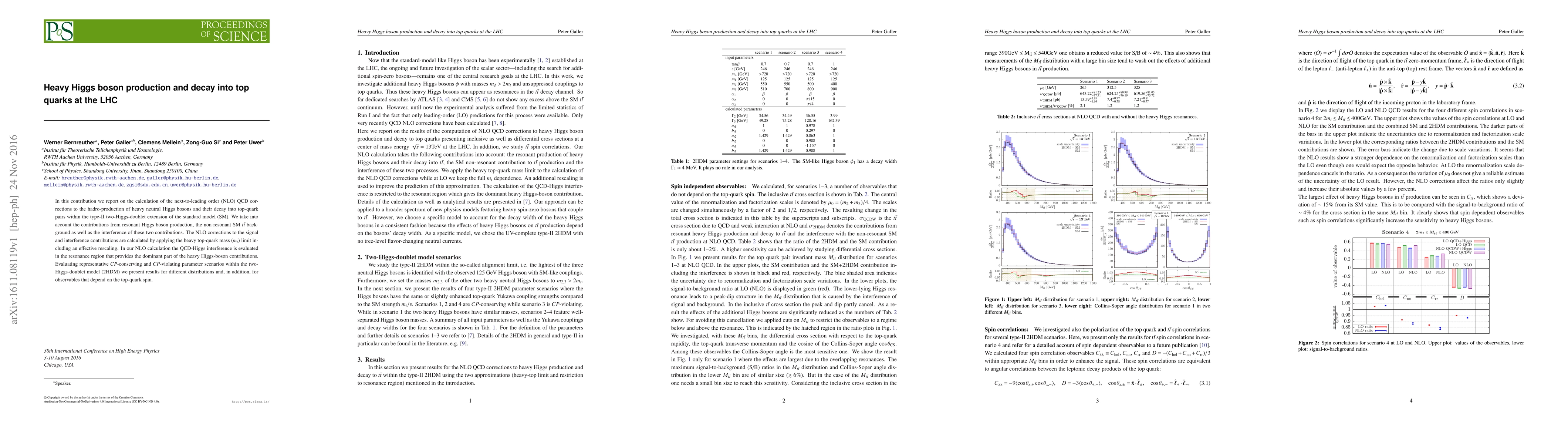 In this contribution we report on the calculation of the next-to-leading order (NLO) QCD corrections to the hadro-production of heavy neutral Higgs bosons and their decay into top-quark pairs within the type-II two-Higgs-doublet extension of the standard model (SM). We take into account the contributions from resonant Higgs boson production, the non-resonant SM $t\bar{t}$ background as well as the interference of these two contributions. The NLO corrections to the signal and interference contributions are calculated by applying the heavy top-quark mass ($m_t$) limit including an effective rescaling. In our NLO calculation the QCD-Higgs interference is evaluated in the resonance region that provides the dominant part of the heavy Higgs-boson contributions. Evaluating representative $CP$-conserving and $CP$-violating parameter scenarios within the two-Higgs-doublet model (2HDM) we present results for different distributions and, in addition, for observables that depend on the top-quark spin.