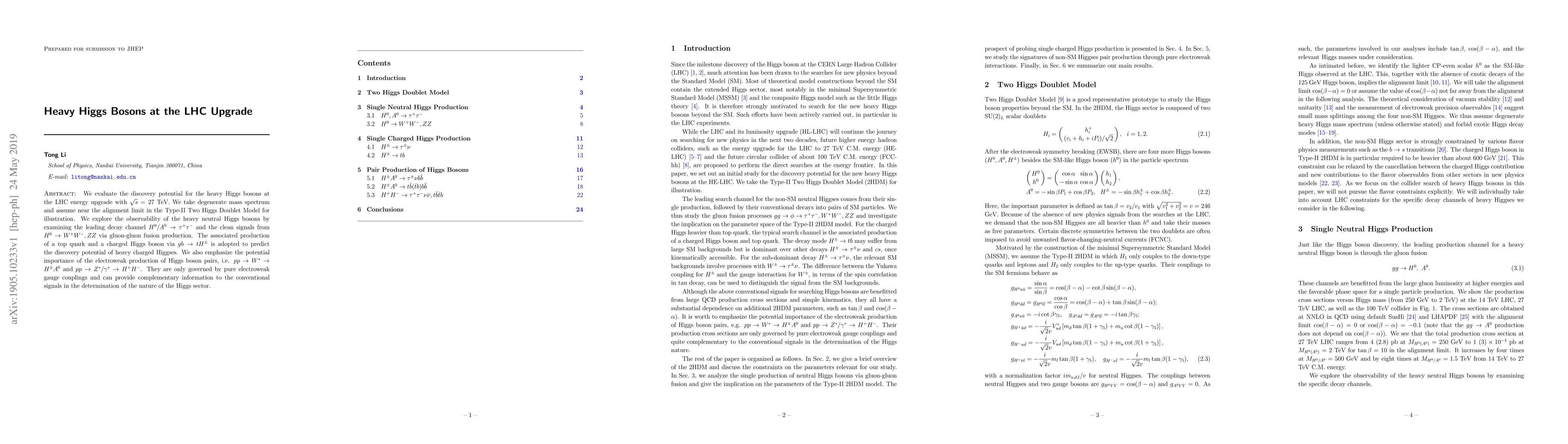 This paper assesses the potential for discovering heavy Higgs bosons at the LHC's 27 TeV upgrade, focusing on the Type-II Two Higgs Doublet Model. It examines decay channels like $H^0/A^0\to \tau^+\tau^-$ and $H^0\to W^+W^-, ZZ$, and highlights the significance of electroweak production of Higgs boson pairs for understanding the Higgs sector.