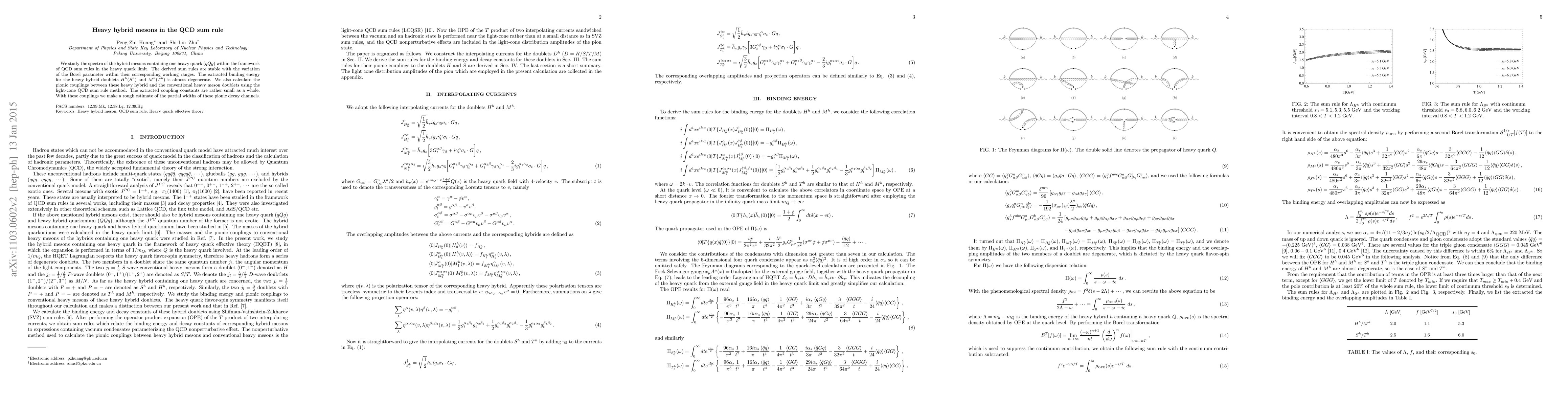 Researchers studied hybrid mesons containing a heavy quark using QCD sum rules, finding small coupling constants for pionic decay channels and almost degenerate binding energies among the heavy hybrid doublets.