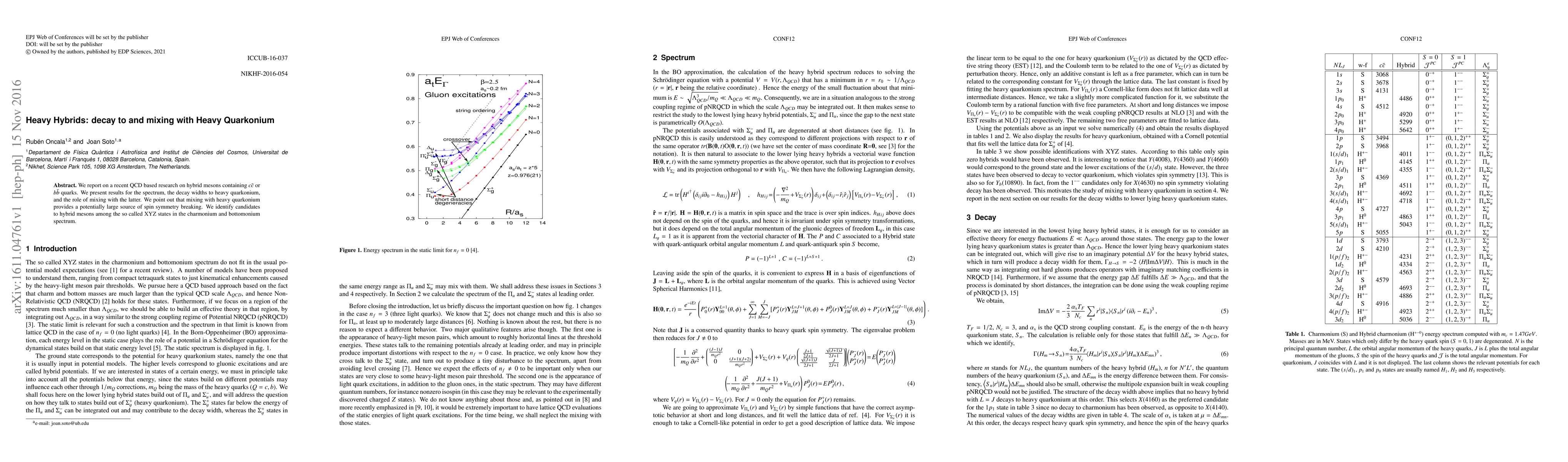 We report on a recent QCD based research on hybrid mesons containing $c\bar c$ or $b\bar b$ quarks. We present results for the spectrum, the decay widths to heavy quarkonium, and the role of mixing with the latter. We point out that mixing with heavy quarkonium provides a potentially large source of spin symmetry breaking. We identify candidates to hybrid mesons among the so called XYZ states in the charmonium and bottomonium spectrum.