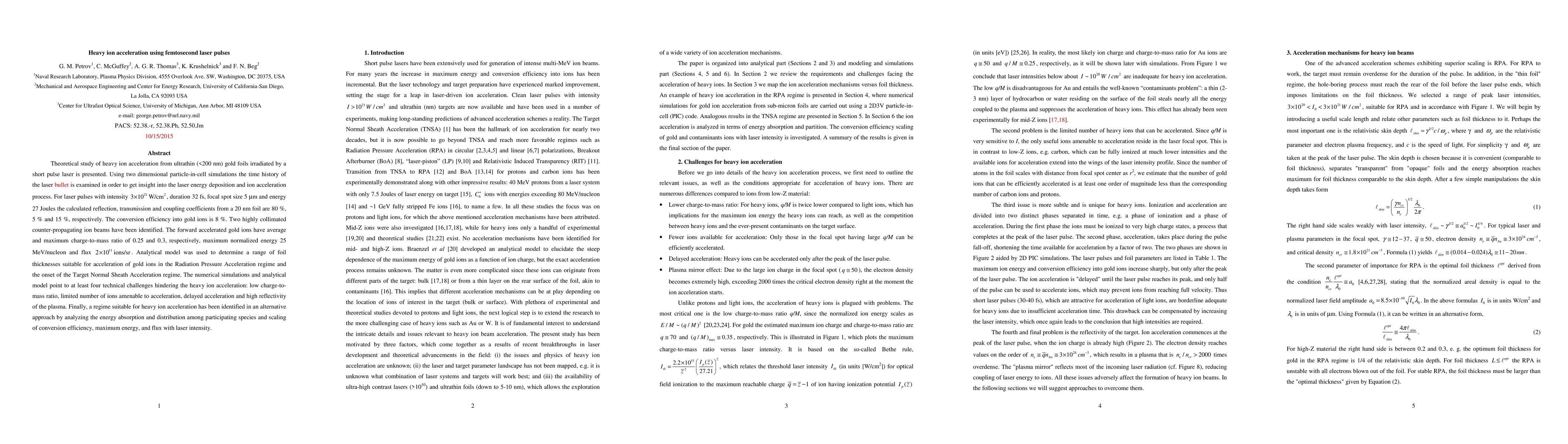 Theoretical study using 2D particle-in-cell (PIC) simulations to investigate heavy ion acceleration from ultrathin gold foils irradiated by femtosecond laser pulses.