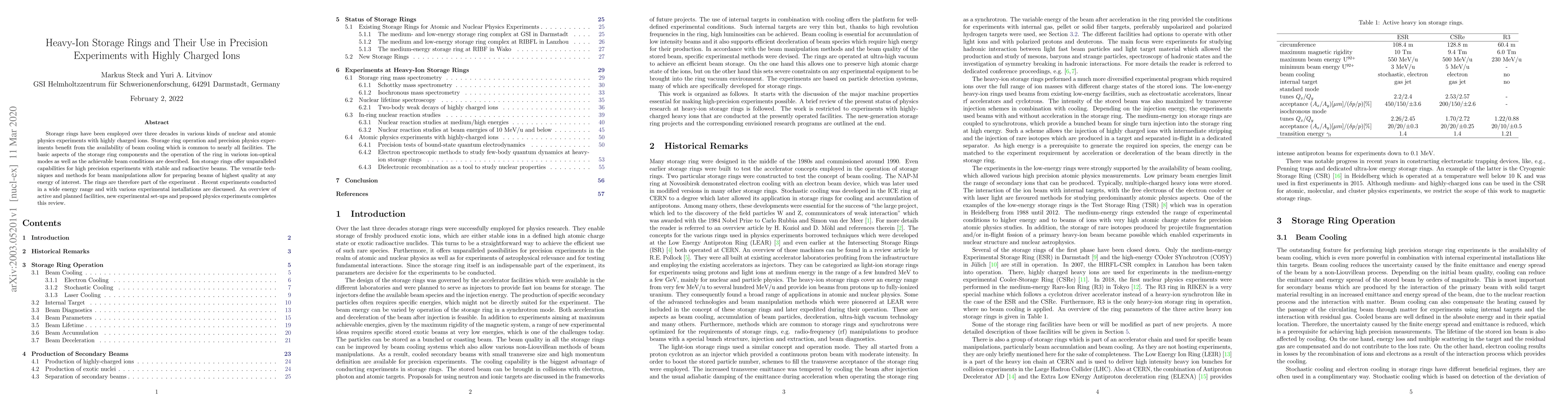 This paper reviews the use of heavy-ion storage rings in precision experiments, detailing their components, operation modes, and beam conditions. It highlights the rings' capabilities for high-precision studies with highly charged ions, emphasizing recent experiments and future prospects.