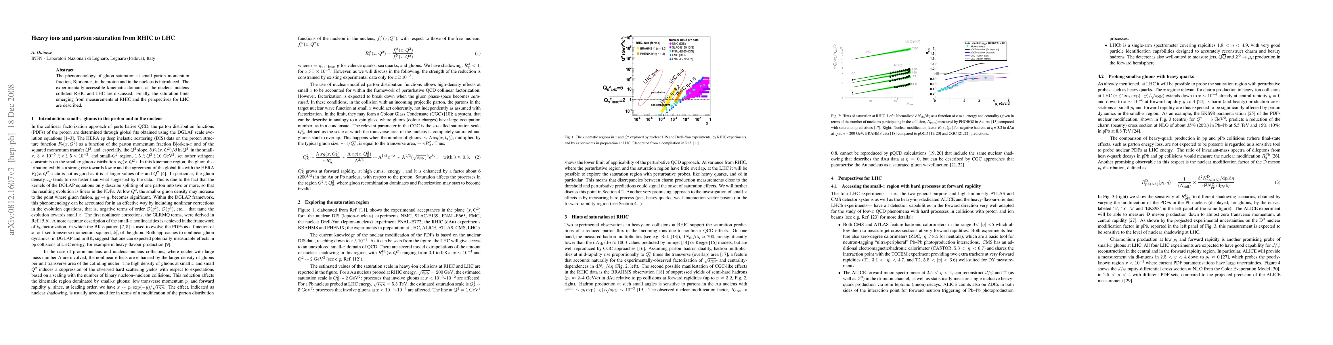 This paper explores gluon saturation phenomena at low parton momentum fractions in protons and nuclei, analyzing the experimental conditions at RHIC and LHC. It highlights initial RHIC findings and outlines future prospects for LHC measurements.