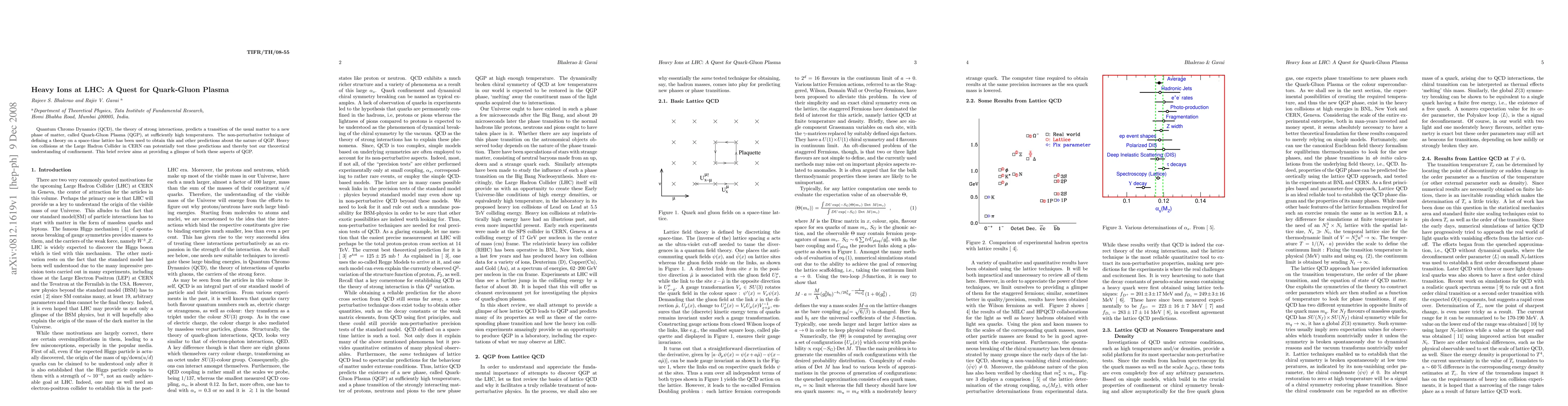Researchers explore the possibility of creating a Quark-Gluon Plasma at the Large Hadron Collider to test theoretical predictions about particle confinement. This study aims to understand the nature of QGP through simulations using Quantum Chromo Dynamics on space-time lattices.