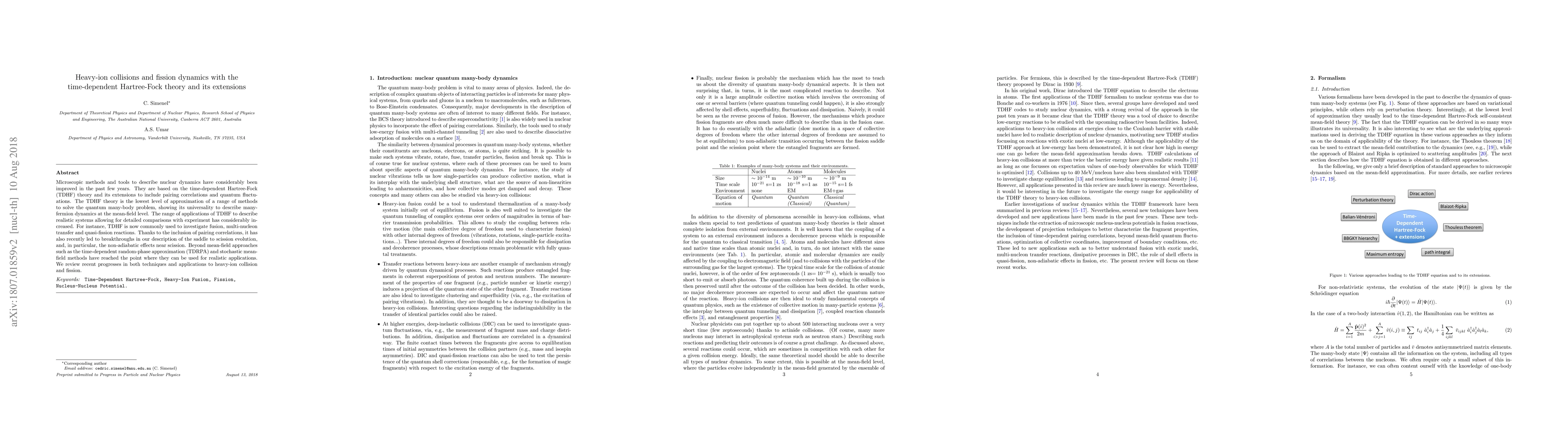 This paper reviews advancements in microscopic methods based on the time-dependent Hartree-Fock (TDHF) theory and its extensions, highlighting their applications in describing heavy-ion collisions, fusion, and fission dynamics, including non-adiabatic effects near scission. It also discusses the integration of beyond mean-field approaches for more realistic simulations.