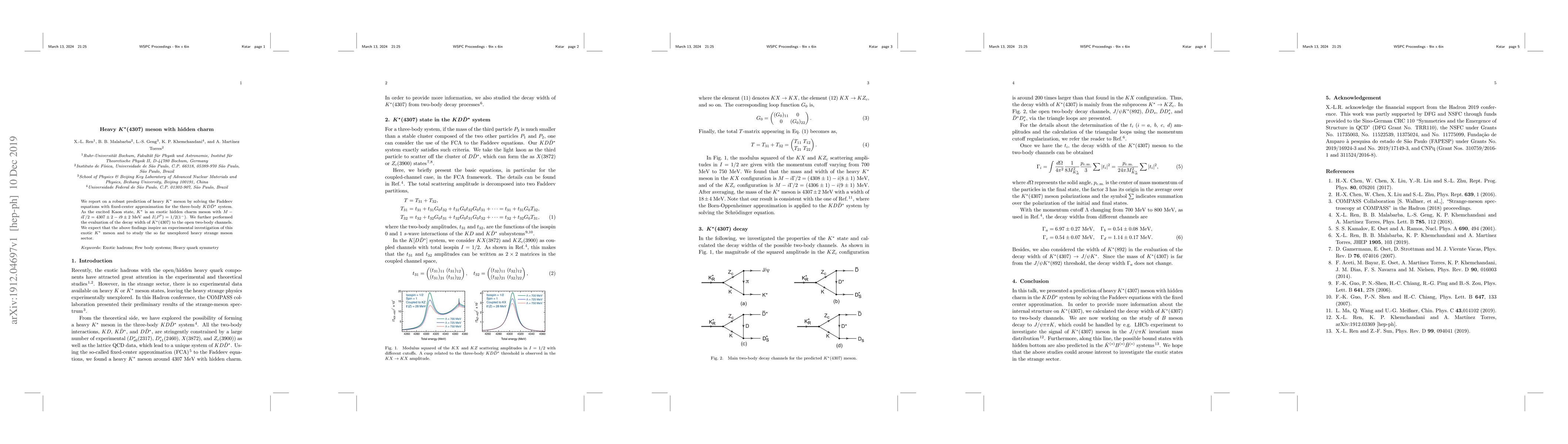 We report on a robust prediction of heavy $K^*$ meson by solving the Faddeev equations with fixed-center approximation for the three-body $KD\bar{D}^*$ system. As the excited Kaon state, $K^*$ is an exotic hidden charm meson with $M-i\Gamma/2=4307\pm2-i9\pm2$ MeV and $I(J^P)=1/2(1^-)$. We further performed the evaluation of the decay width of $K^*(4307)$ to the open two-body channels. We expect that the above findings inspire an experimental investigation of this exotic $K^*$ meson and to study the so far unexplored heavy strange meson sector.
