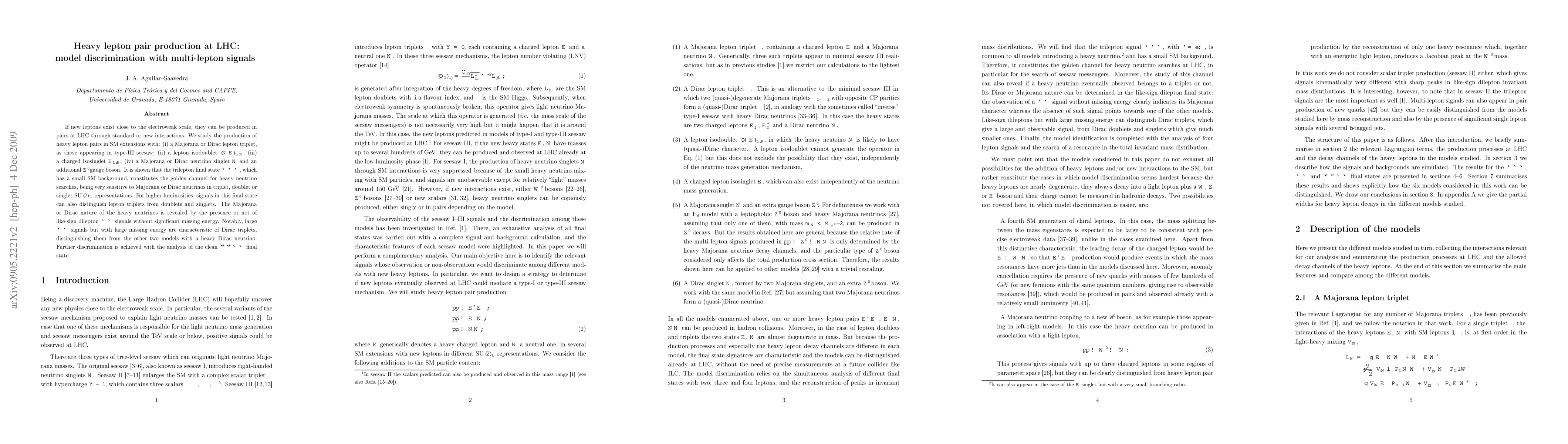 This paper investigates heavy lepton pair production at the LHC, focusing on multi-lepton signals for model discrimination. It identifies the trilepton final state as optimal for distinguishing between various SM extensions featuring Majorana or Dirac leptons, with like-sign dilepton signals aiding in determining the nature of the heavy neutrinos.