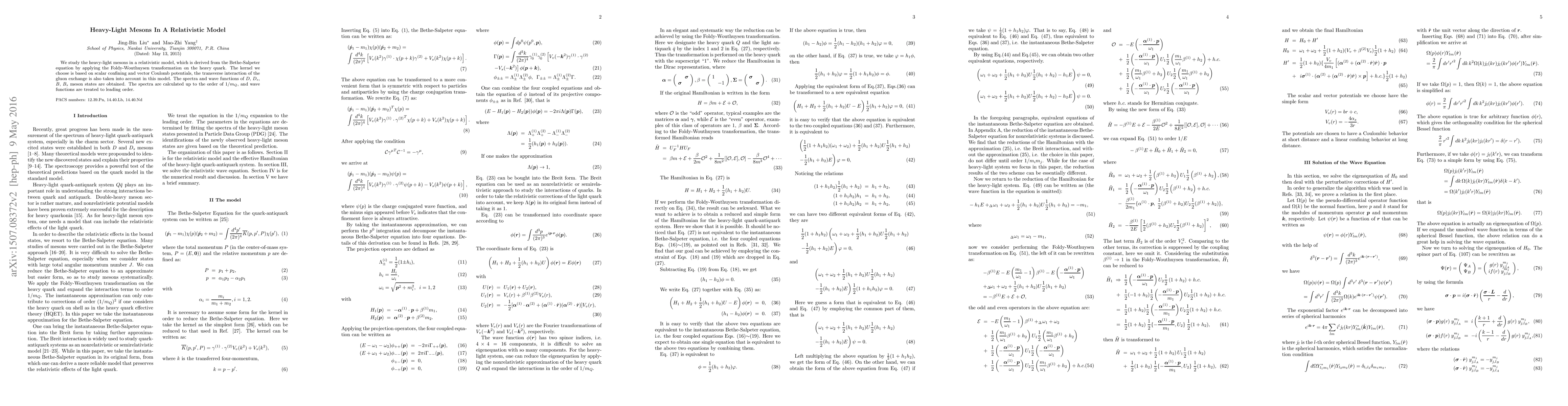 We study the heavy-light mesons in a relativistic model, which is derived from the instantaneous Bethe-Salpeter equation by applying the Foldy-Wouthuysen transformation on the heavy quark. The kernel we choose is based on scalar confining and vector Coulomb potentials, the transverse interaction of the gluon exchange is also taken into account in this model. The spectra and wave functions of $D$, $D_s$, $B$, $B_s$ meson states are obtained. The spectra are calculated up to the order of $1/m_Q$, and wave functions are treated to leading order.