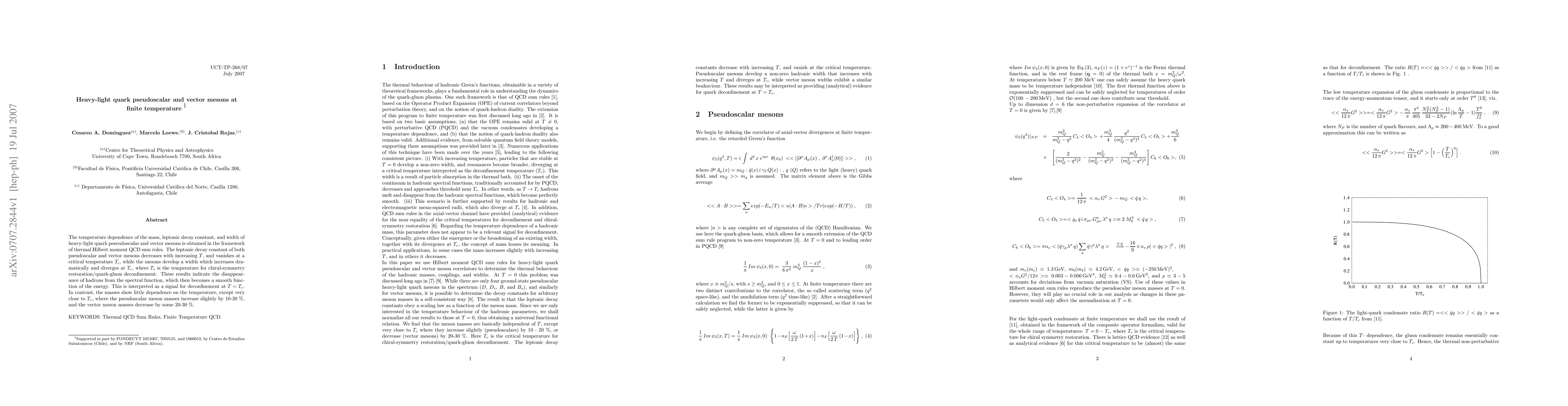 This study investigates the temperature dependence of heavy-light quark pseudoscalar and vector mesons using thermal QCD sum rules, revealing that leptonic decay constants vanish and meson widths increase dramatically at the critical temperature $T_c$ for chiral symmetry restoration, signaling deconfinement. The masses show minimal changes, except near $T_c$ where pseudoscalar masses rise slightly and vector meson masses decrease.